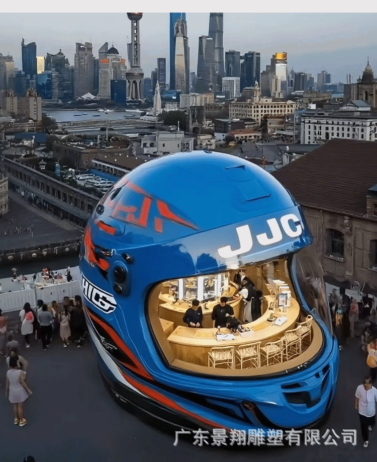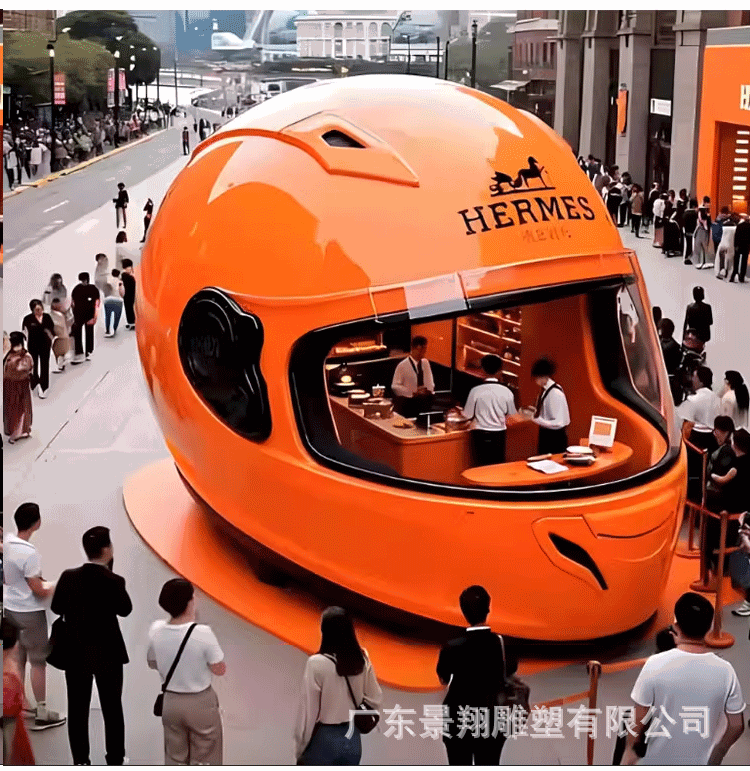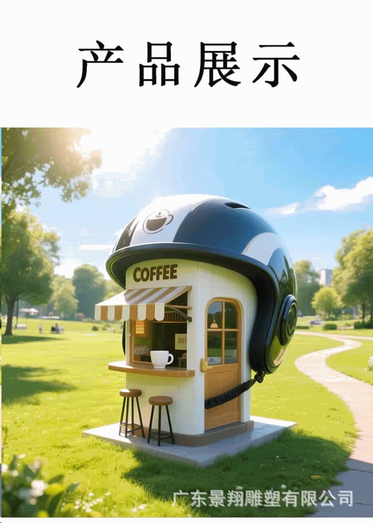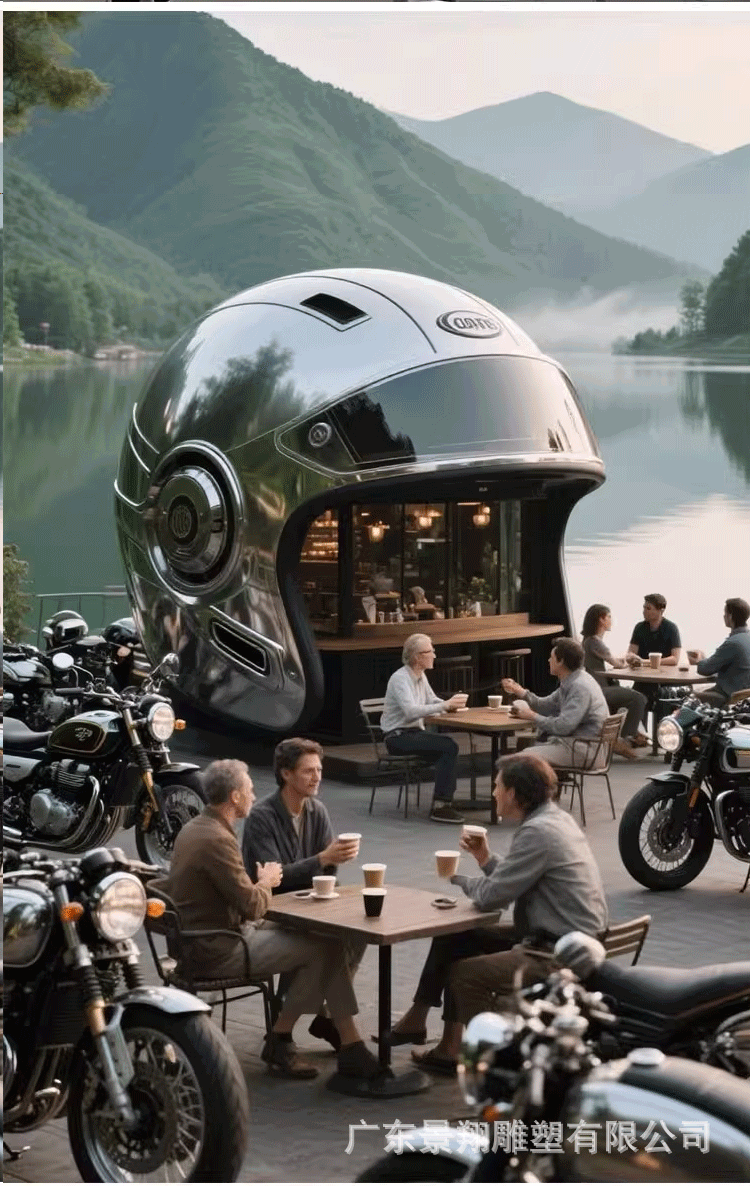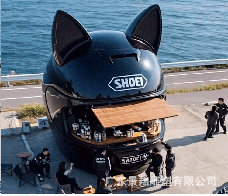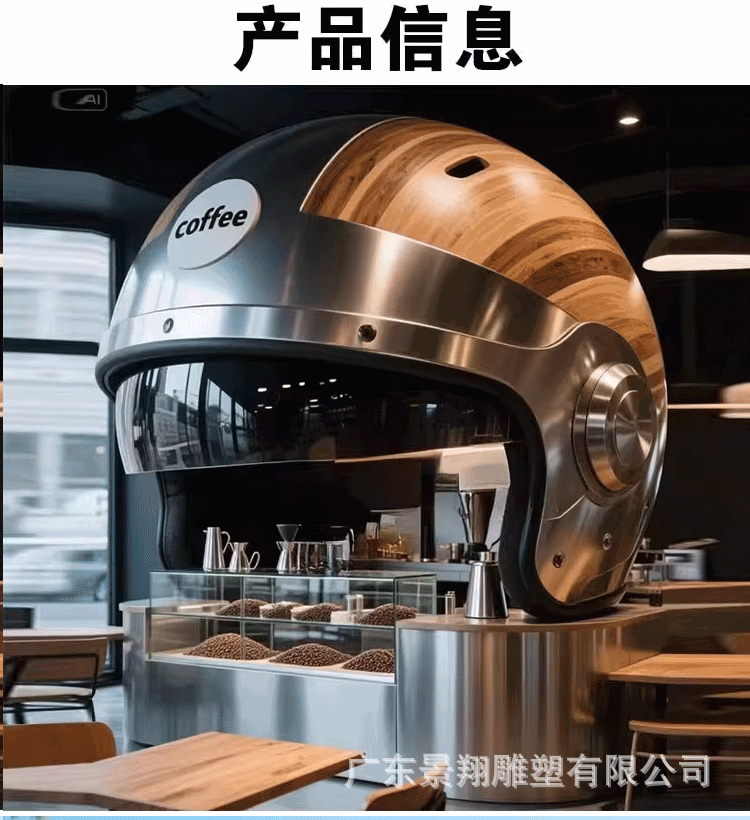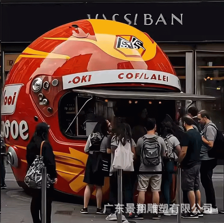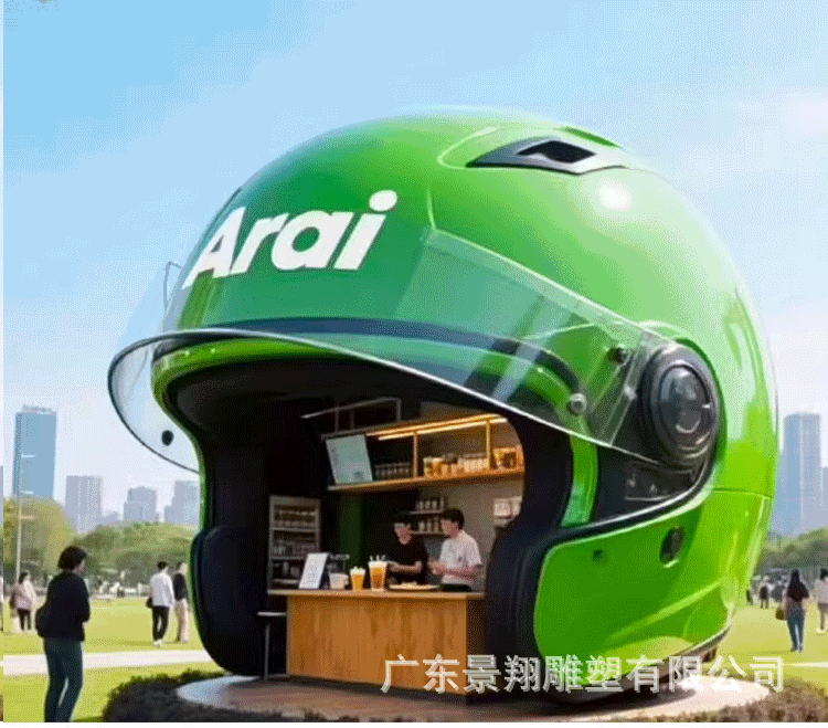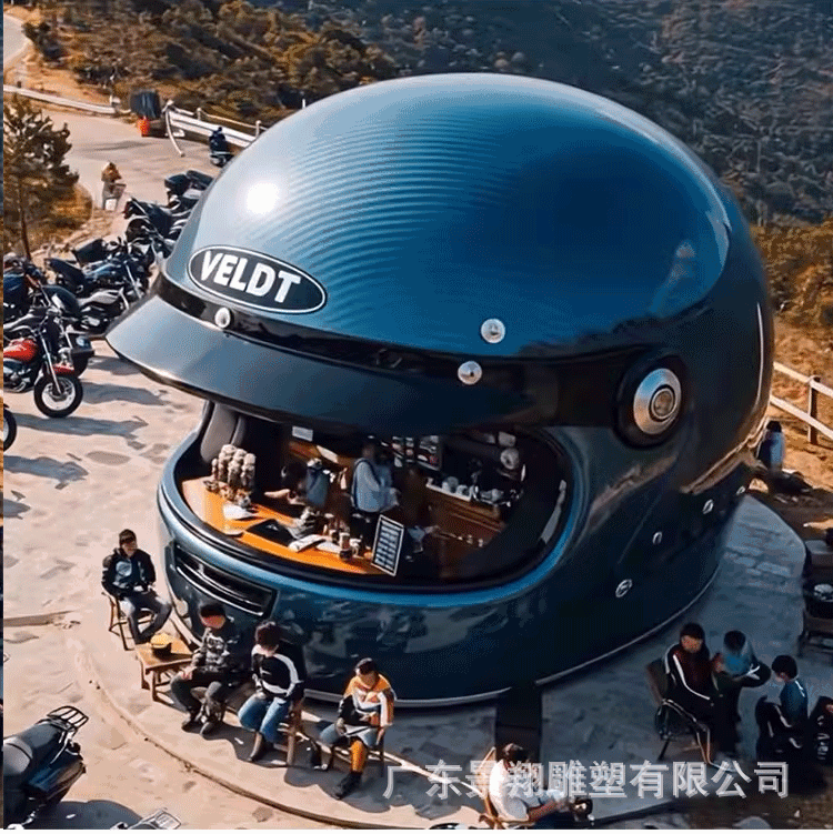 巨型大头盔咖啡屋玻璃钢雕塑定制户外移动餐巴售卖亭网红打卡点