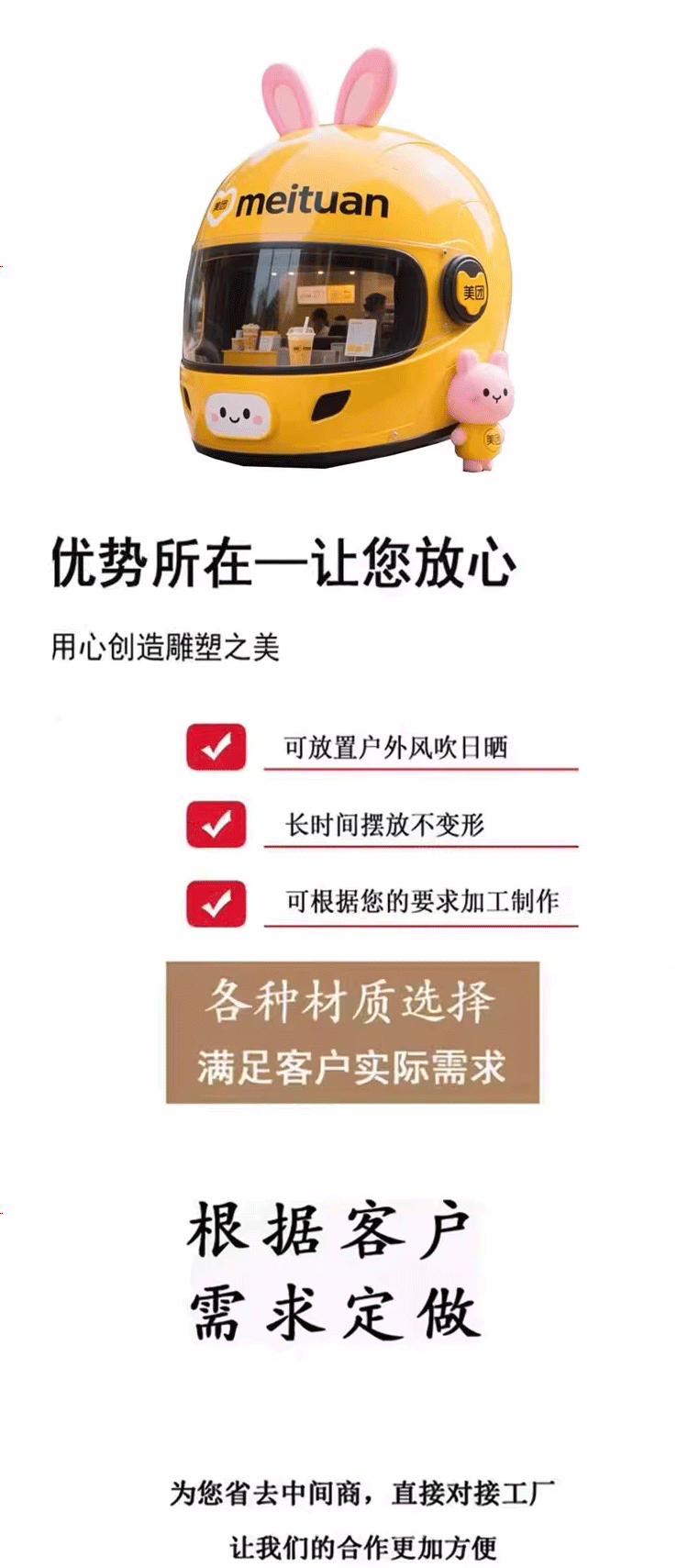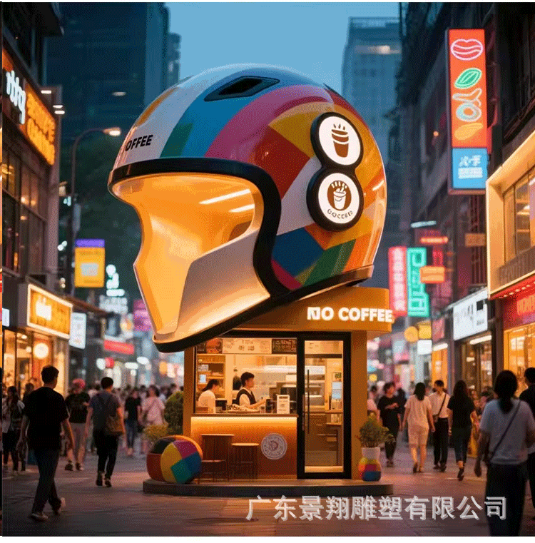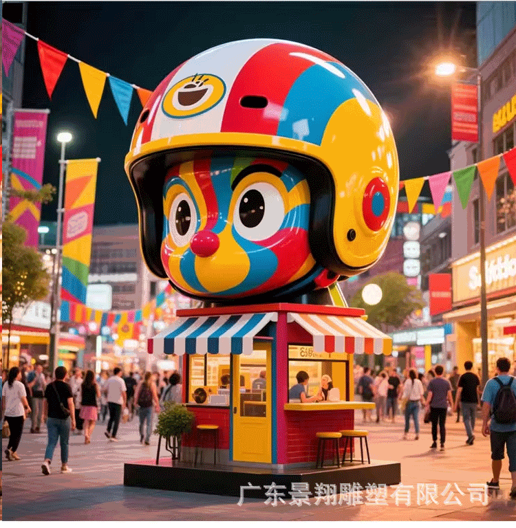 大型グラスファイバーヘルメット彫刻インターネット有名人コーヒーショップ屋外景勝商業街ミルクティースタンドダイニングバーディスプレイ