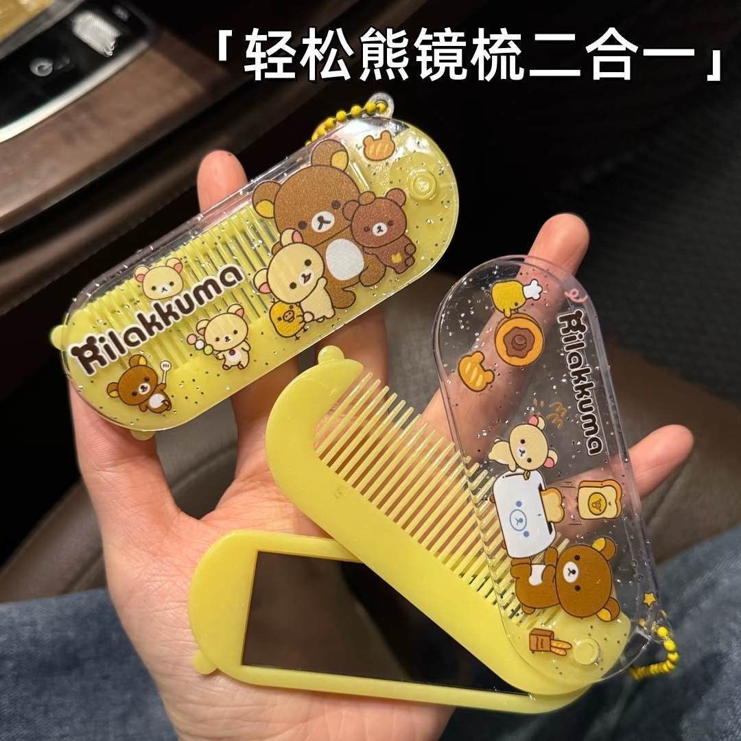 新しい漫画リラックマポータブル女性専用コームミラー一体型折りたたみ小型コームヘアスムージングマッサージ