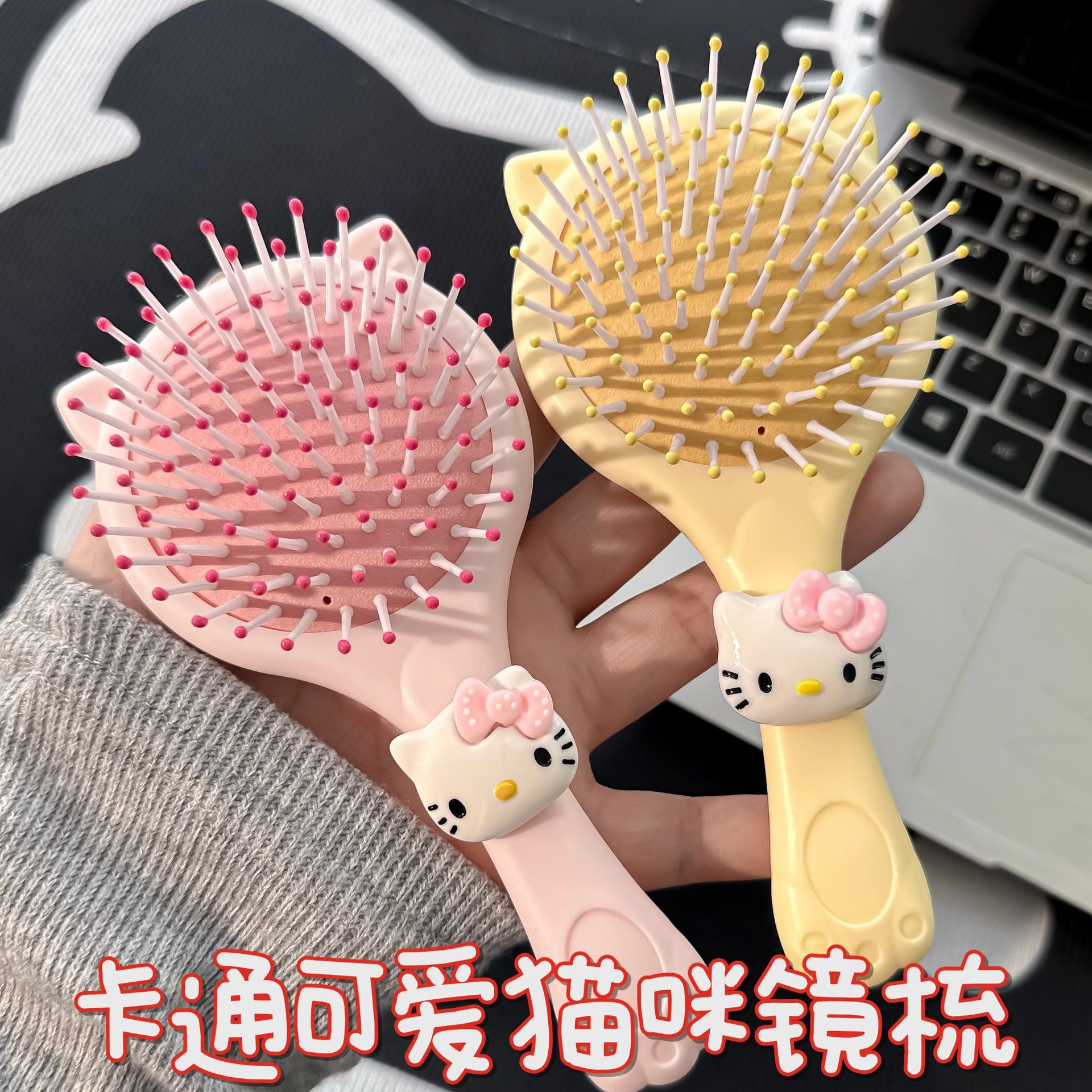 可爱kitty猫镜梳二合一高颜值随身便携气垫镜梳软妹便携按摩梳子