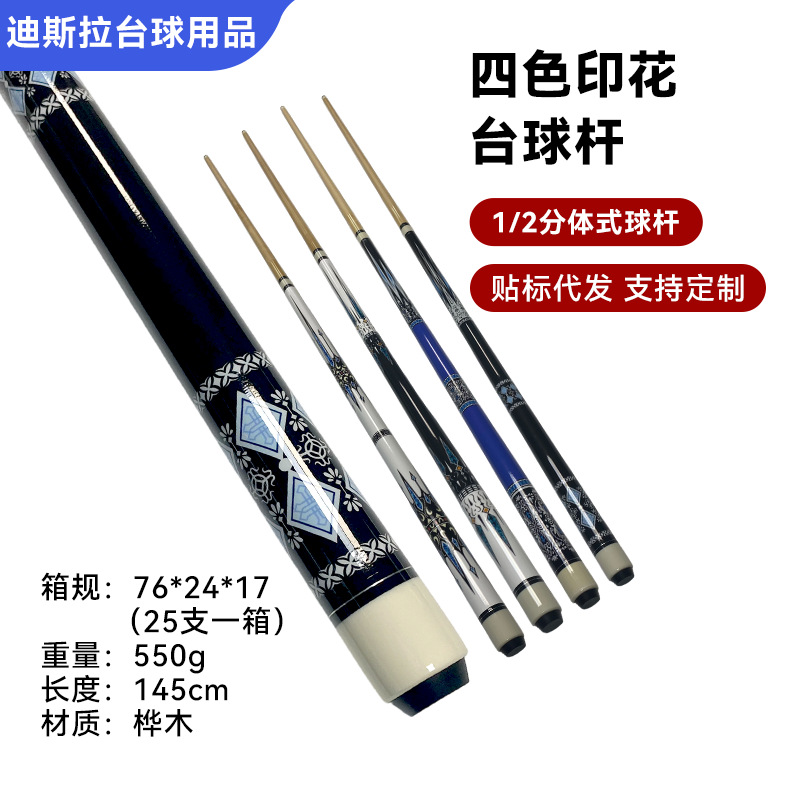 新手进阶13mm大头杆分体式台球杆九球专用四色印花桦木球杆批发
