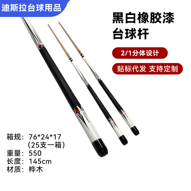 黑白橡胶漆桦木台球杆中八美式台球专用二分之一分体球杆现货批发
