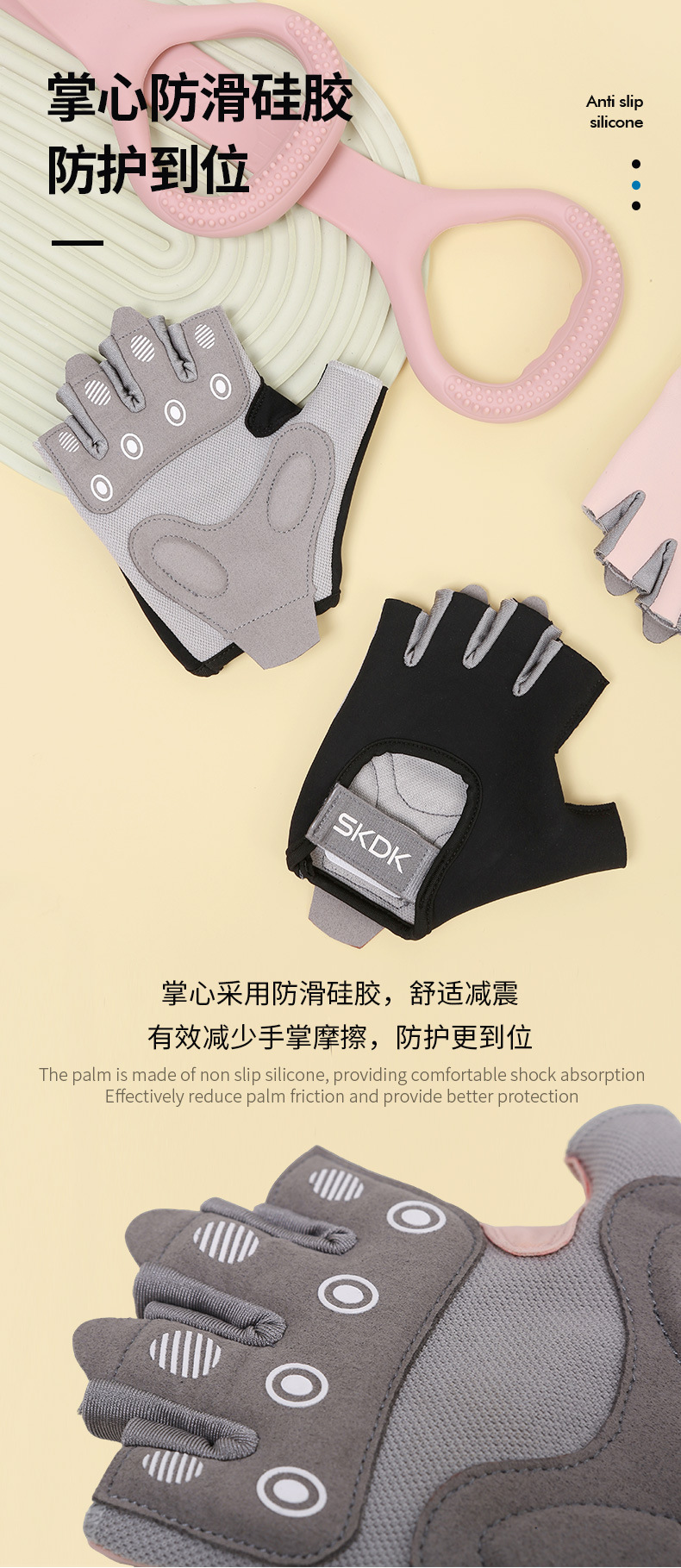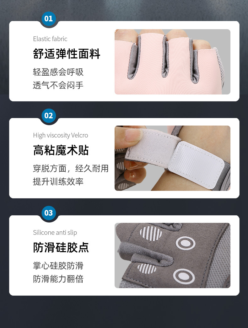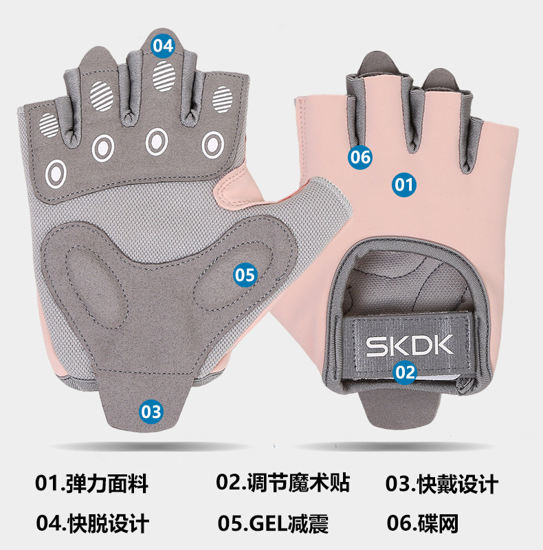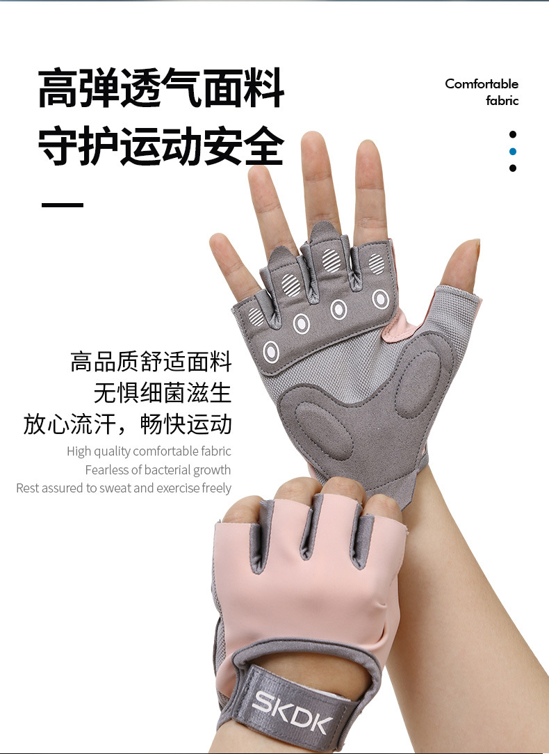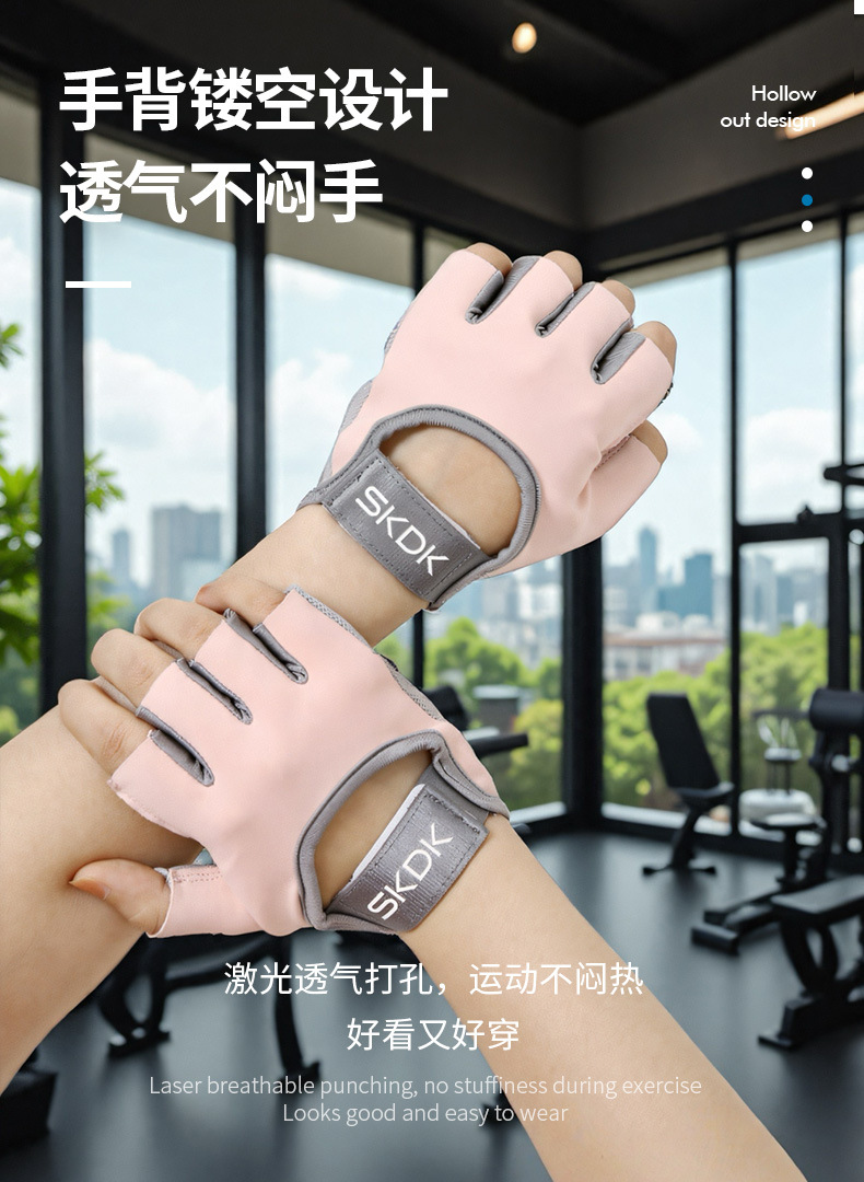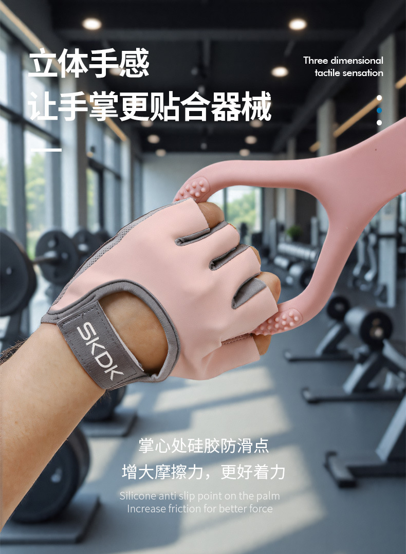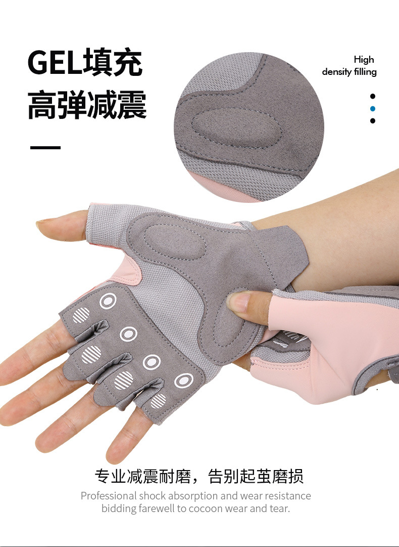 フィットネスグローブ、角質防止、女性用ハーフフィンガーグローブ、通気性シリコンパームプロテクター、ケトルベル、スポーツトレーニング、サイクリング、リストバンド、卸売