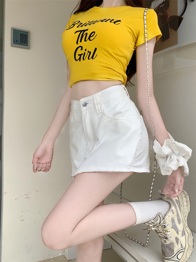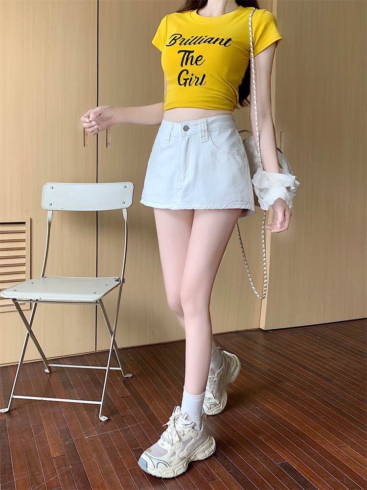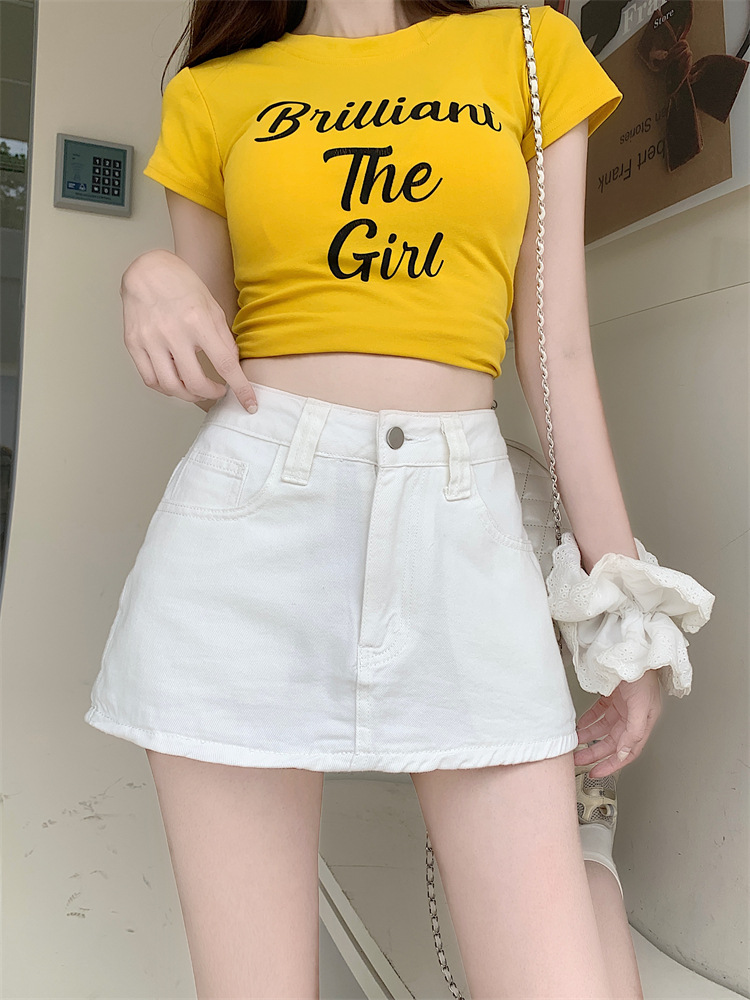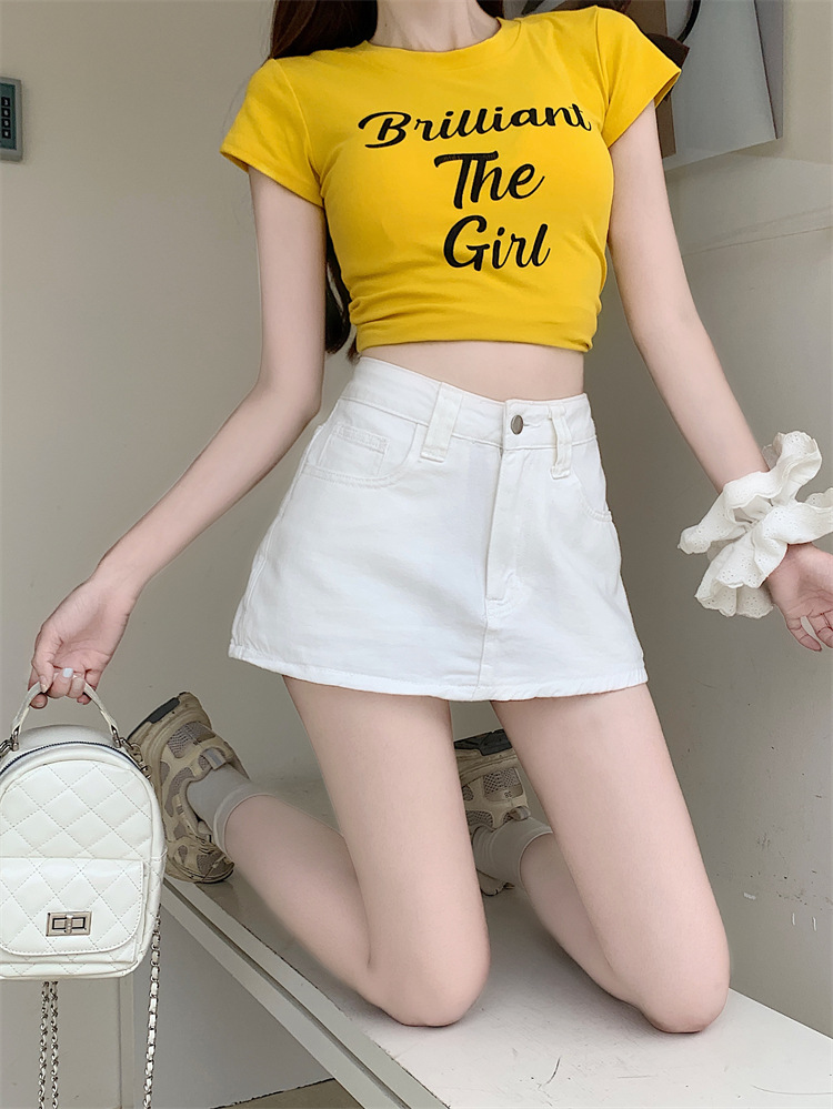 女性のための白いハイウエストデニムスカート夏の新しい薄いAライン大きいサイズファットmm小柄なヒップカバースカート