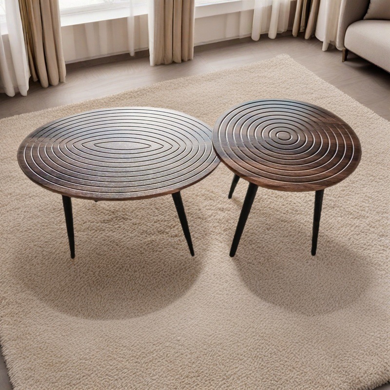 Meiziyang 北欧スタイルの年輪コーヒーテーブル小さなアパートクリエイティブコンビネーションティーテーブル E0 レベル環境に優しい無塗装人工ボードイン