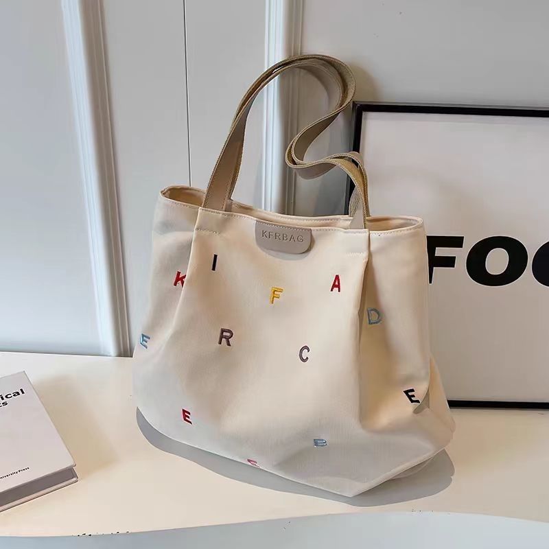 女性のための大容量キャンバスバッグ 2025 新しいトレンディな刺繍レターハンドバッグ小さな新鮮な学生ショルダートートバッグ