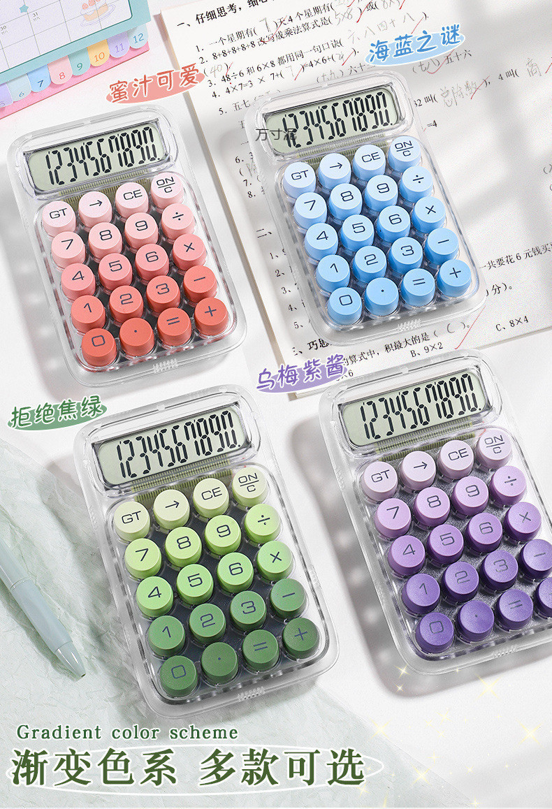 新高顔値計算機円形機械キーボード計算機グラデーション色学生試験専用便利計算機
