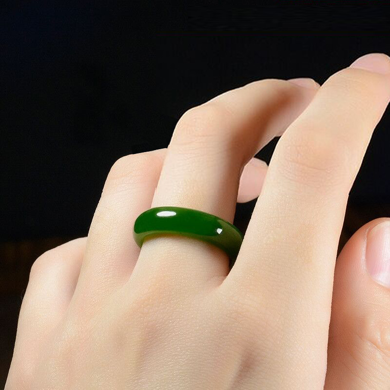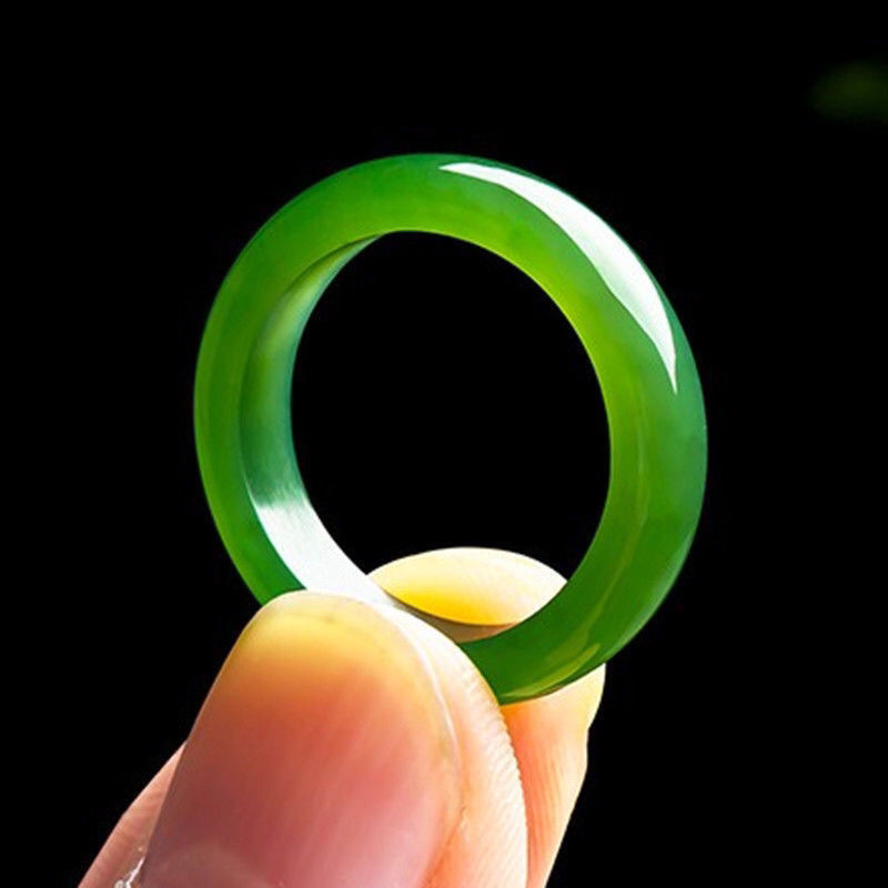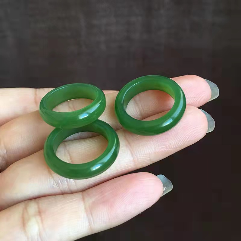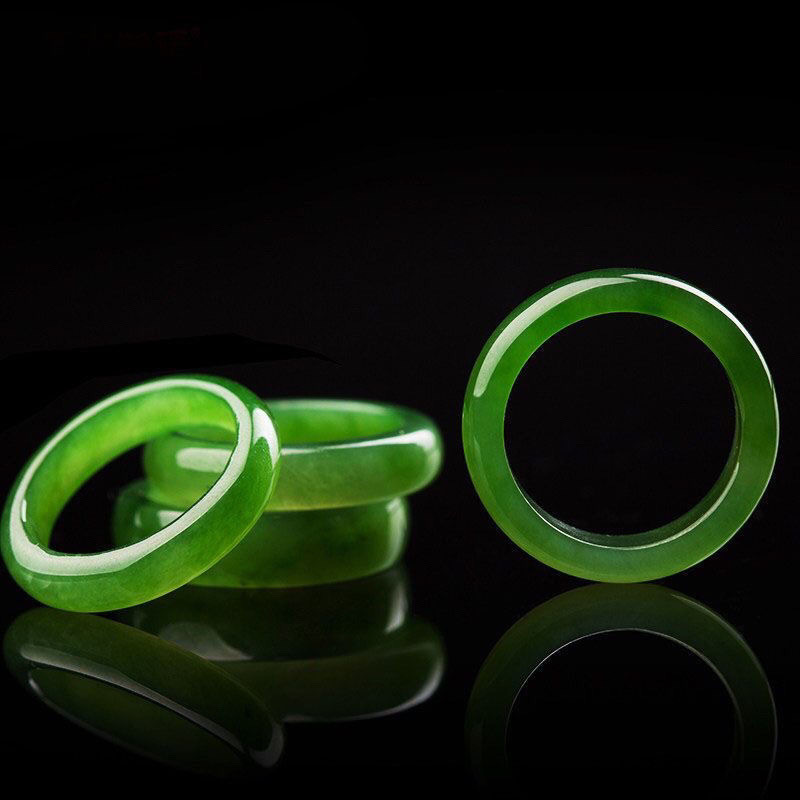 天然ホータン翡翠ジャスパーリング翡翠リング男性と女性のための翡翠リングジャスパーリングほうれん草グリーン翡翠卸売