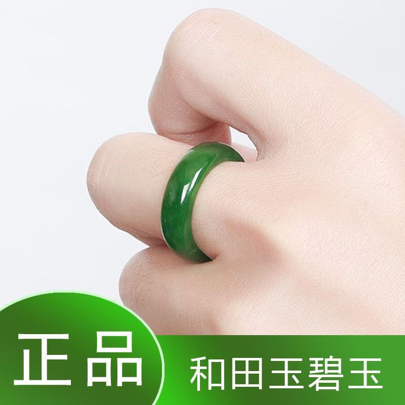 新疆和田碧玉指輪指環碧玉ホウレンソウ緑玉環男女金玉指輪指環満輪指輪