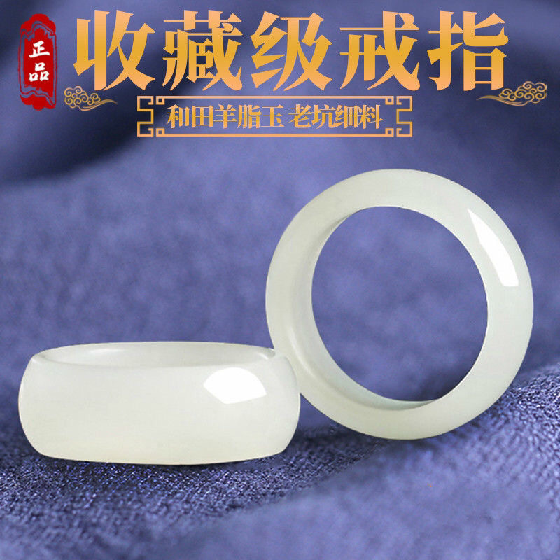 新疆ホータン翡翠羊脂グレード高級白翡翠リング翡翠テールリングリング男性と女性のカップルリング完成品新しいスタイル