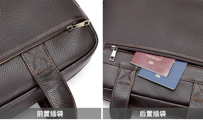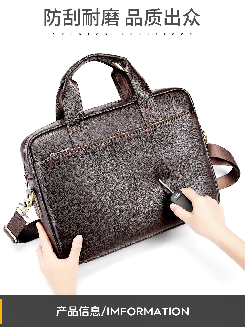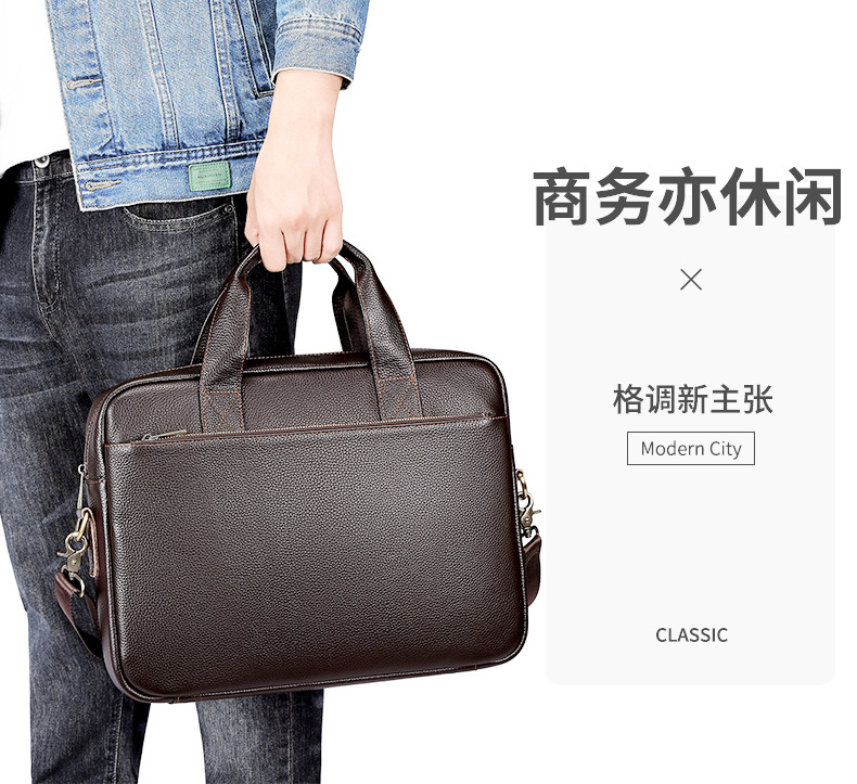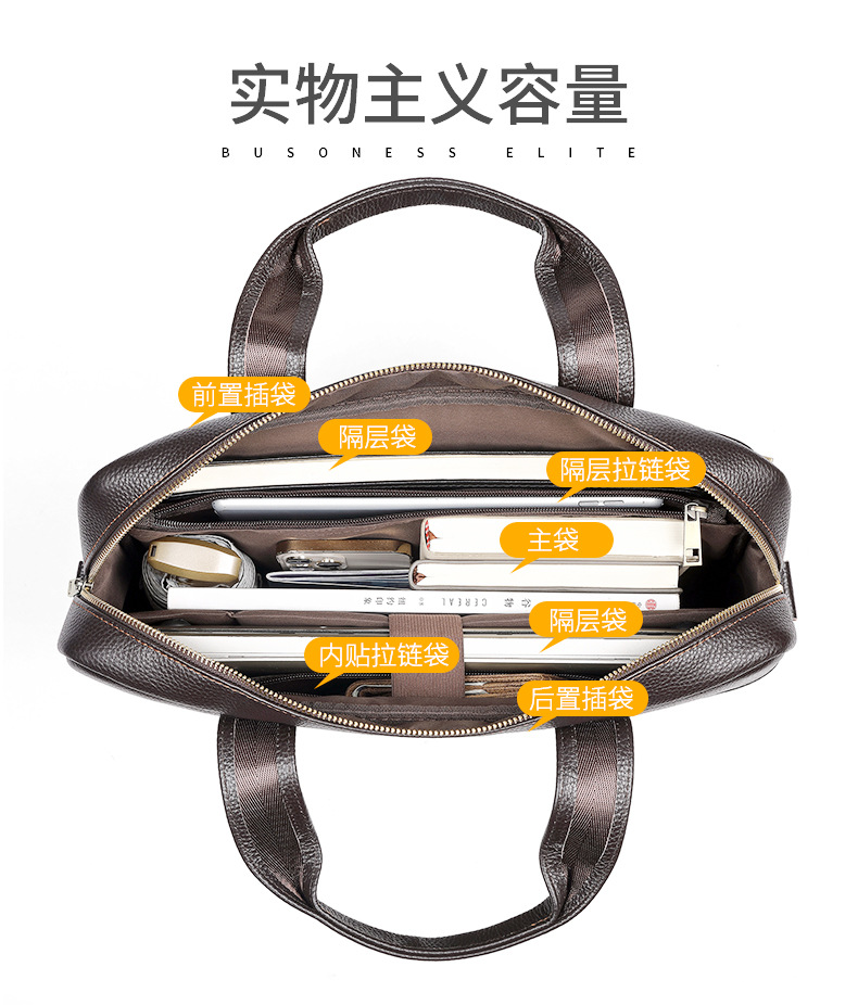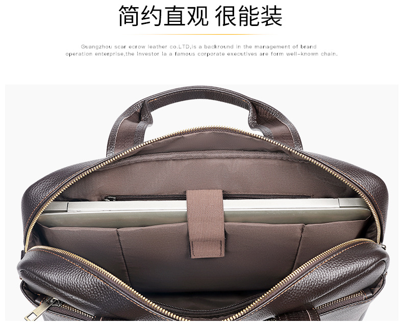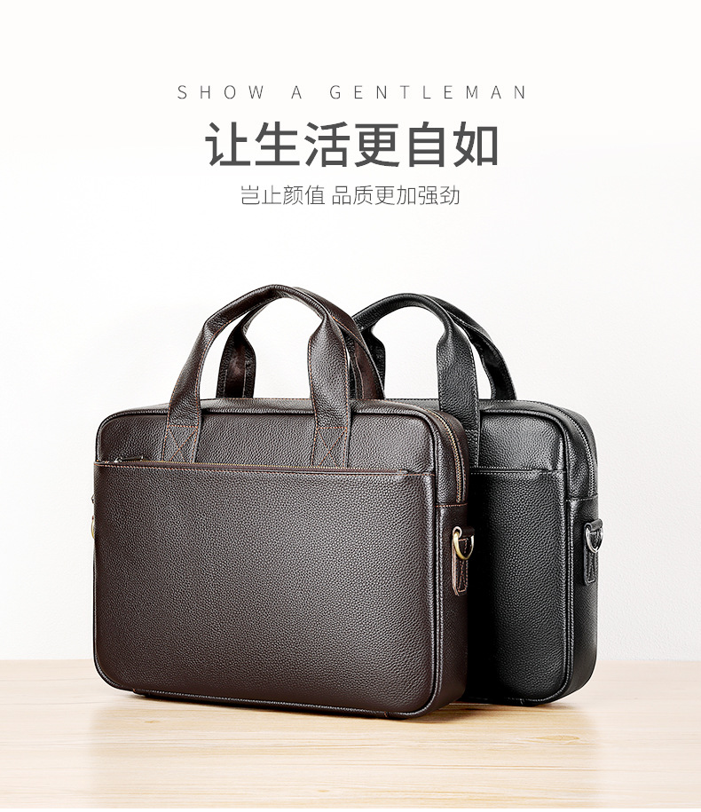 クロスボーダー直販メンズ本革ハンドバッグトップ層牛革ブリーフケース14インチ大容量パソコンバッグ工場卸売り
