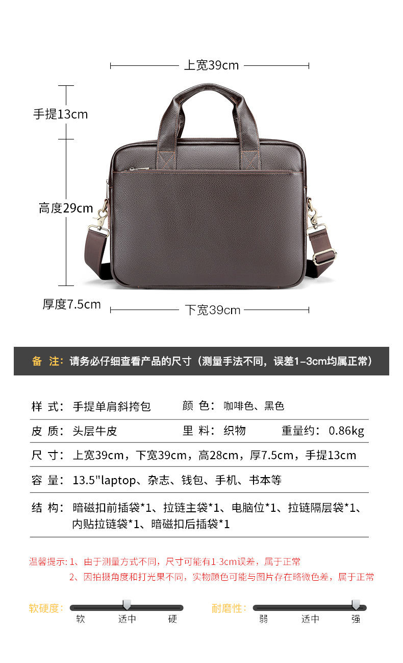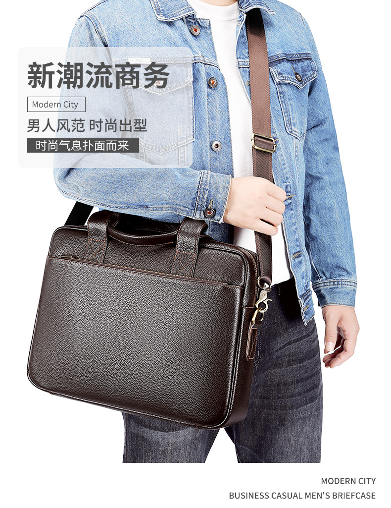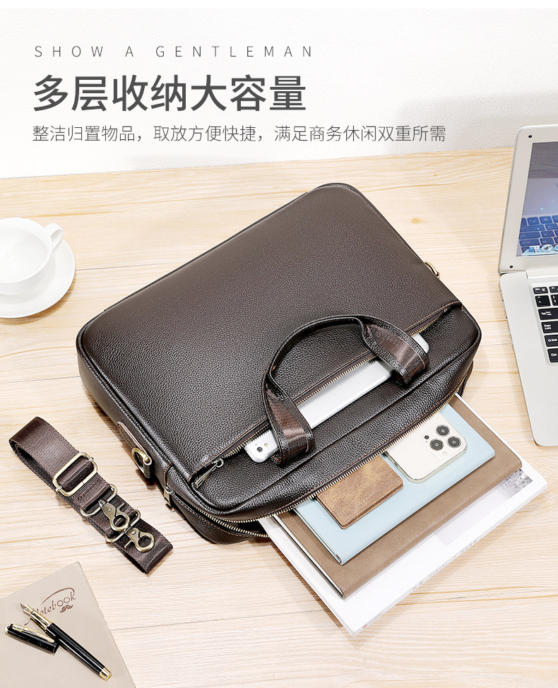 本革メンズブリーフケース肩掛け斜め掛けショルダーバッグトップ層牛革クロスボーダー人気手提げ出張郵便差パソコンバッグ