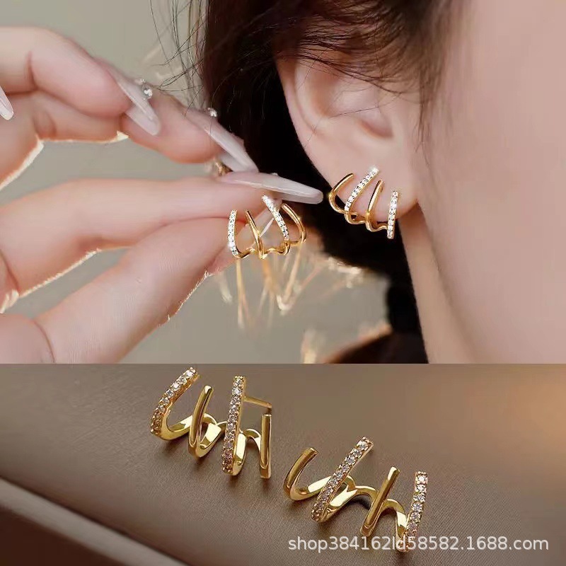 幾何学的なマイクロ象嵌ジルコンイヤリングニッチな新しいトレンディなインターネットセレブイヤリングハイエンドの気質イヤリング