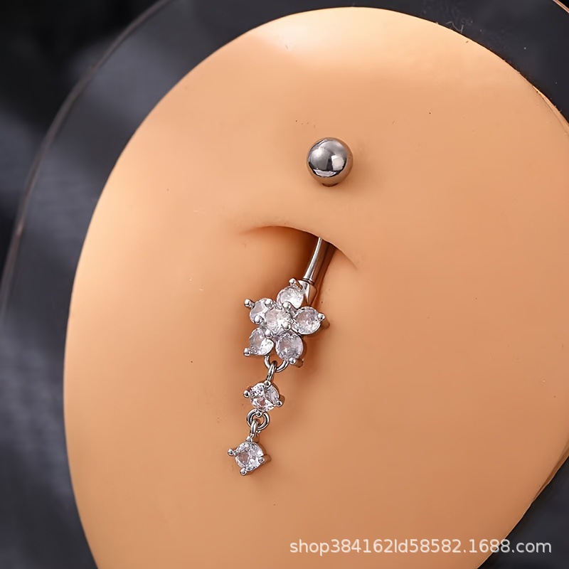 ファッション新ジュエリーへそリングジルコンペンダント花の形のへそ釘セクシーなへそピアスジュエリー卸売