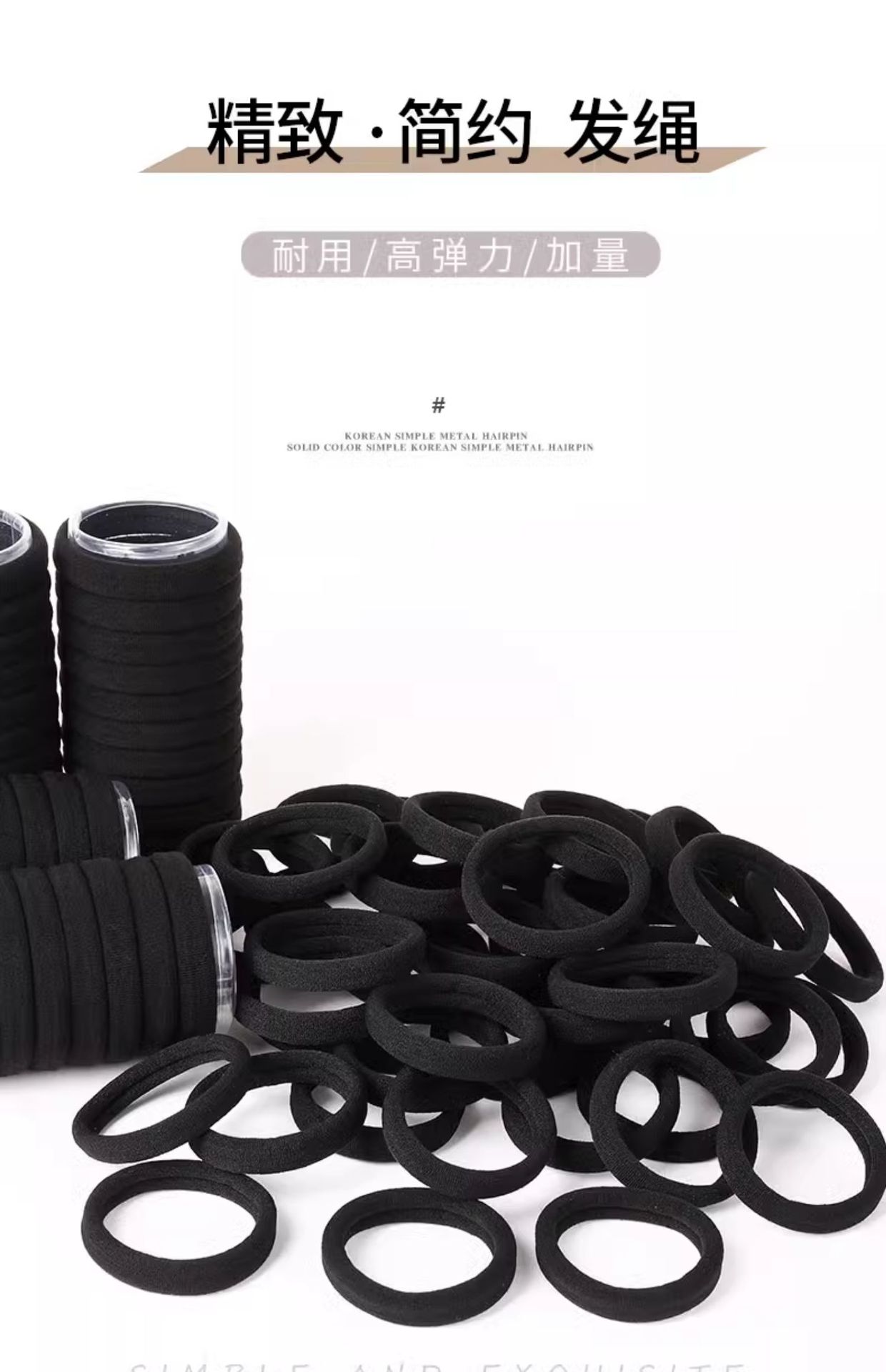 5CMタオルリングゴムバンド女性用ヘアタイ韓国風高弾性耐久性のあるレザーケースシンプルな気質黒ヘッドバンドクロスボーダー