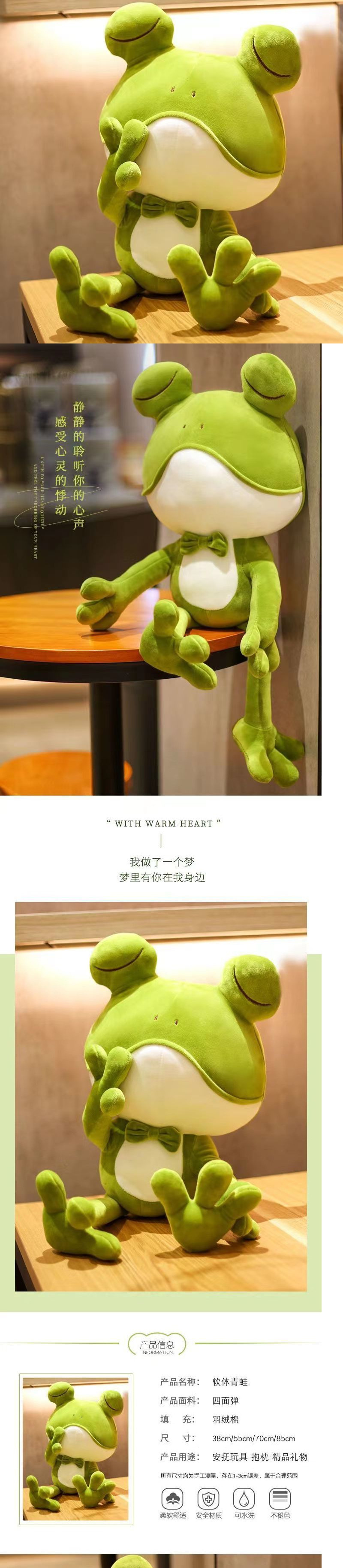 かわいいカエルぬいぐるみ人形睡眠枕人形誕生日ギフトベッドなだめる布人形男の子用