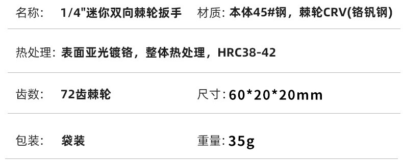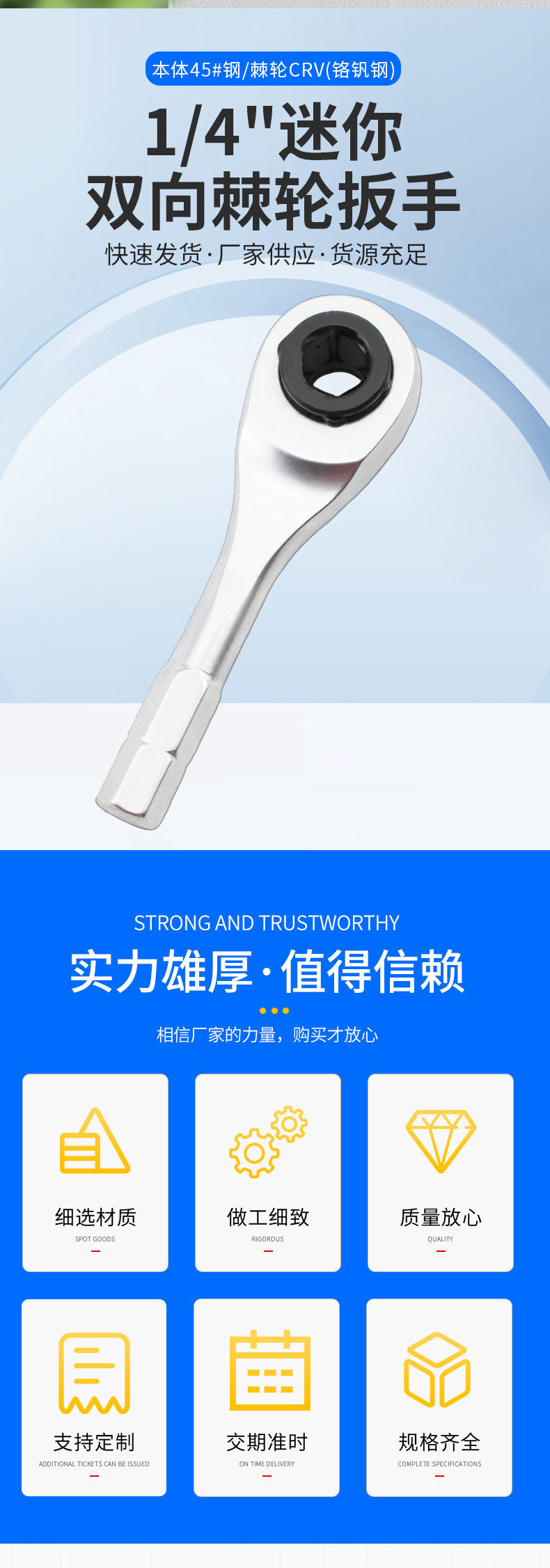 1/4クイックレンチ両方向ラチェット72歯小飛刺輪金輪荊棘レンチ1/4ミニラチェットレンチ