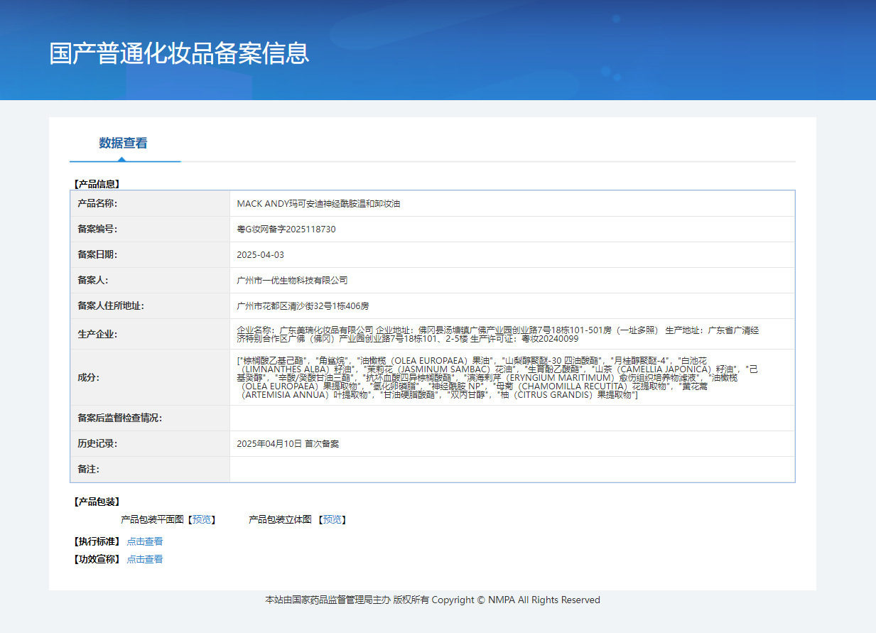非特殊化粧品登録証番号 広東Gメイクアップネットワーク準備番号 2025118730