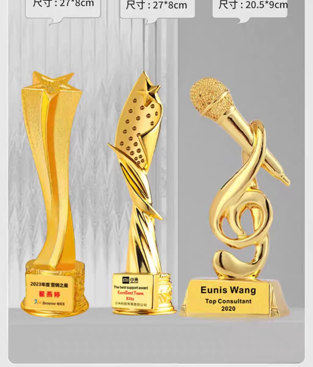 メーカー卸売樹脂トロフィー優秀社員授賞創意競技賞水晶ダンス金属メダル親指