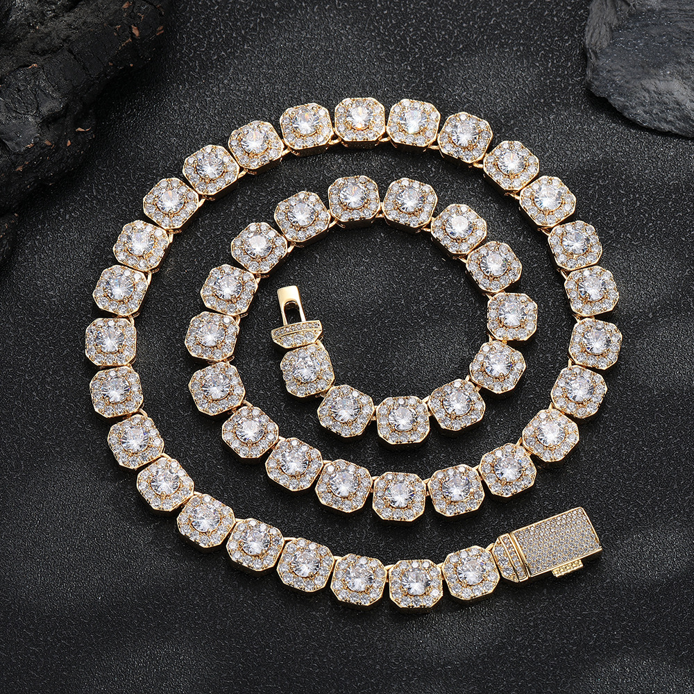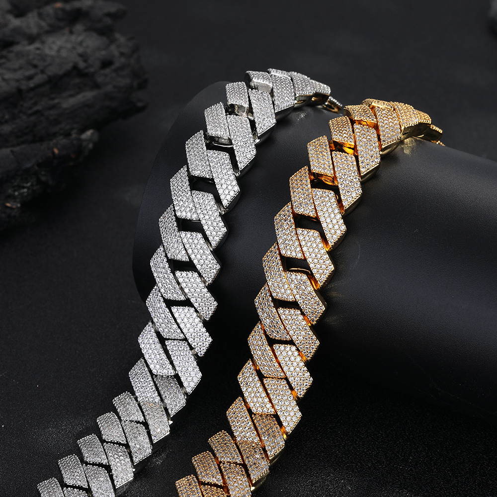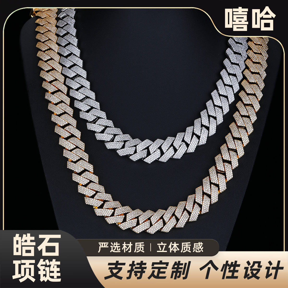 嘻哈说唱风12mm方圆钻古巴项链手链潮流百搭男项链街头风时尚饰品