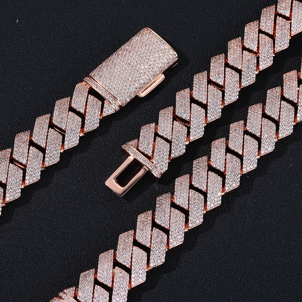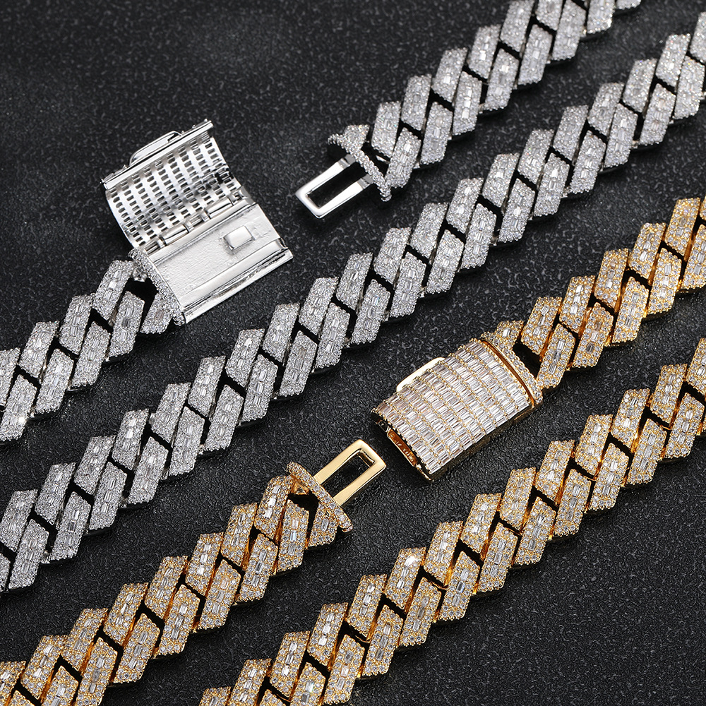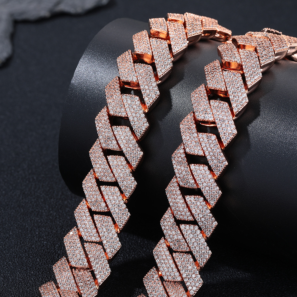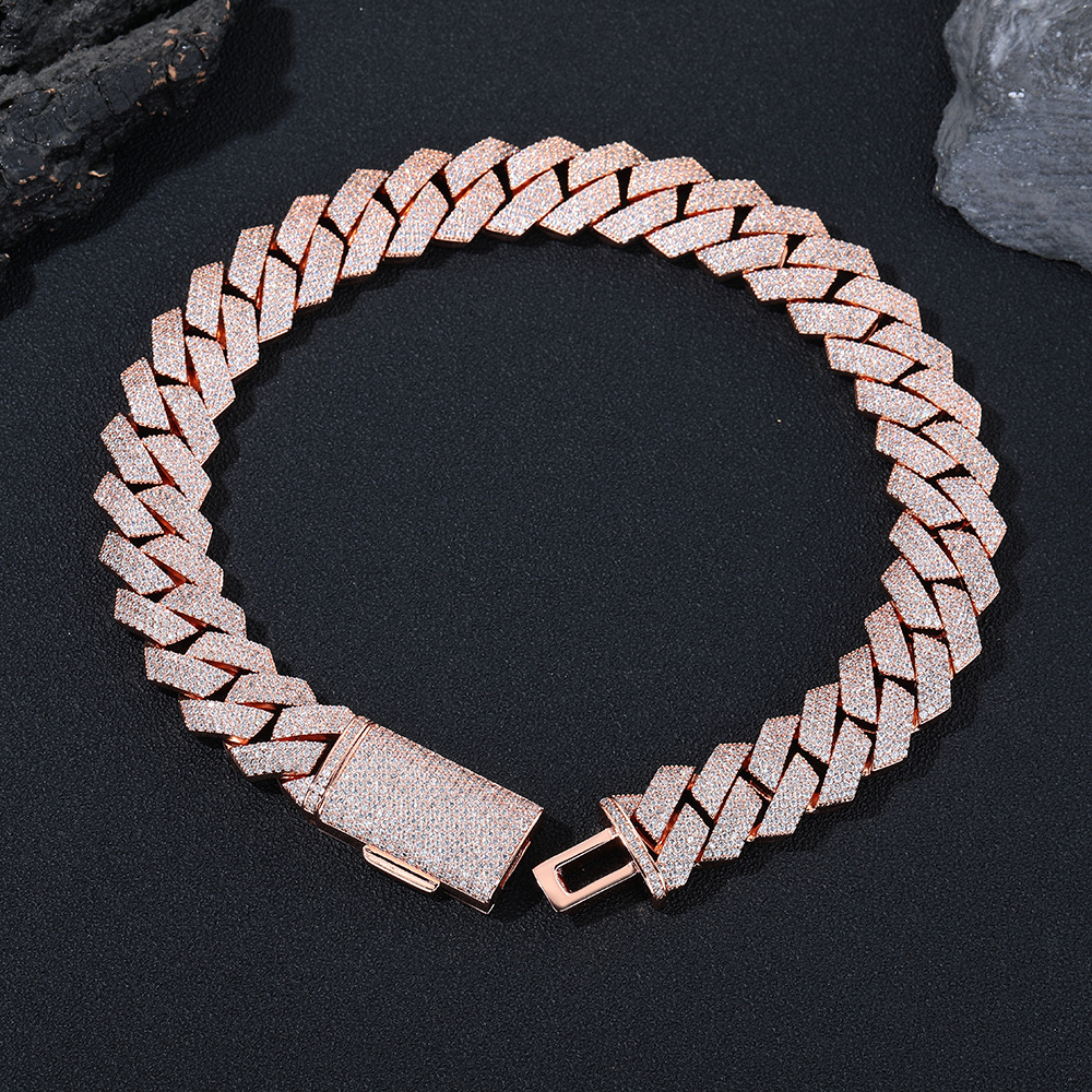 嘻哈说唱风12mm方圆钻古巴项链手链潮流百搭男项链街头风时尚饰品