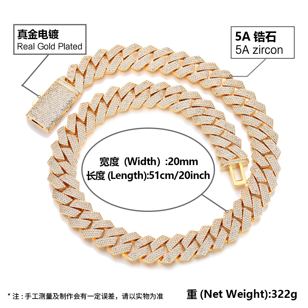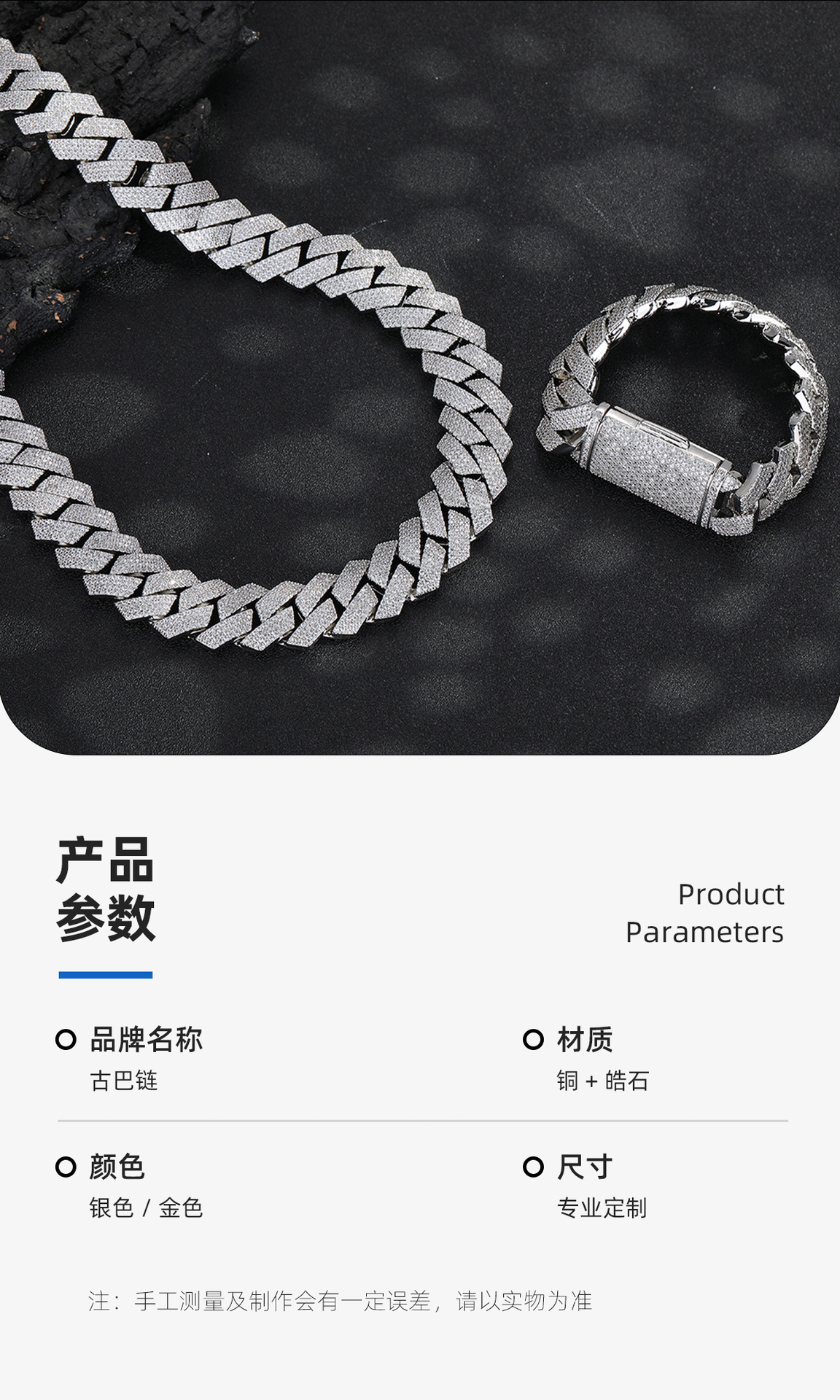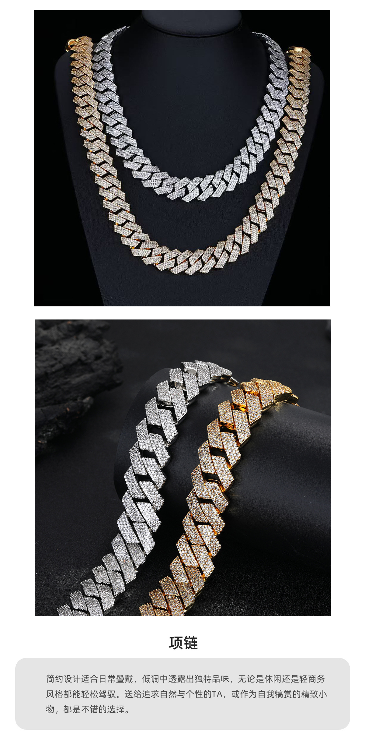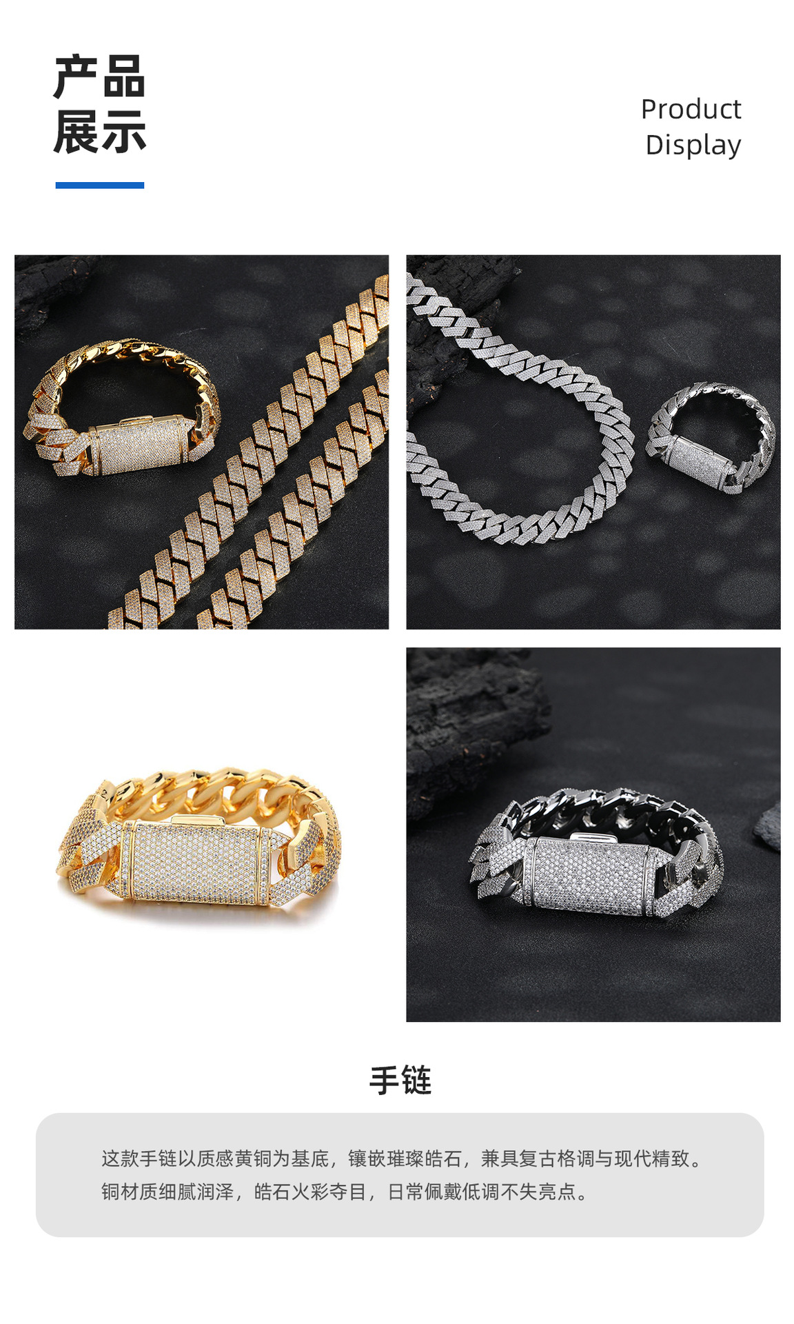 15mm几何菱形古巴链项链手链嘻哈个性锆石项链男女同款街头风饰品