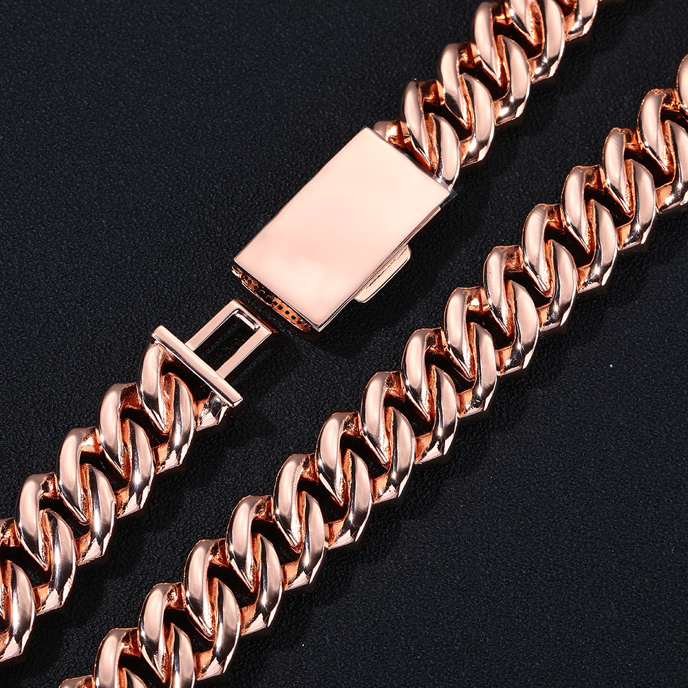 欧米風メンズヒップホップキューバネックレス、銅製ジルコン入り14mm菱形キューバチェーン、ヒップホップネックレスブレスレット