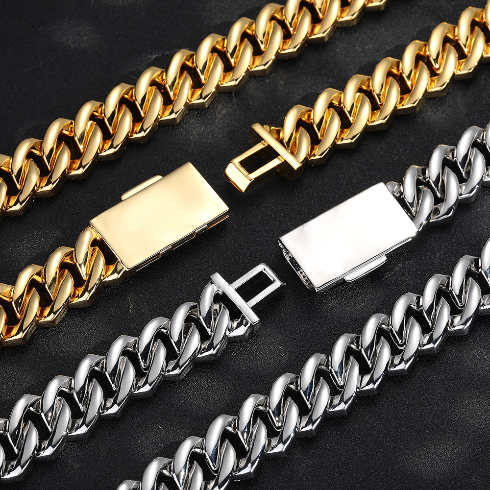 ヨーロッパとアメリカのヒップホップブレスレットニッチハイエンドメンズファッションボックスバックル銅象嵌ジルコンシルバー 18 ミリメートルキューバネックレス