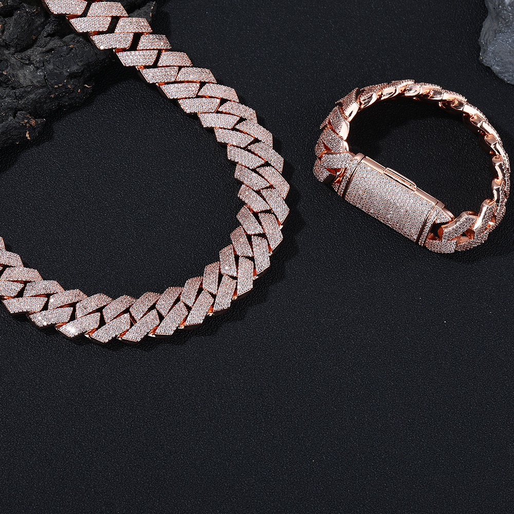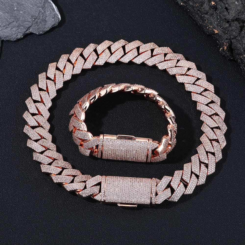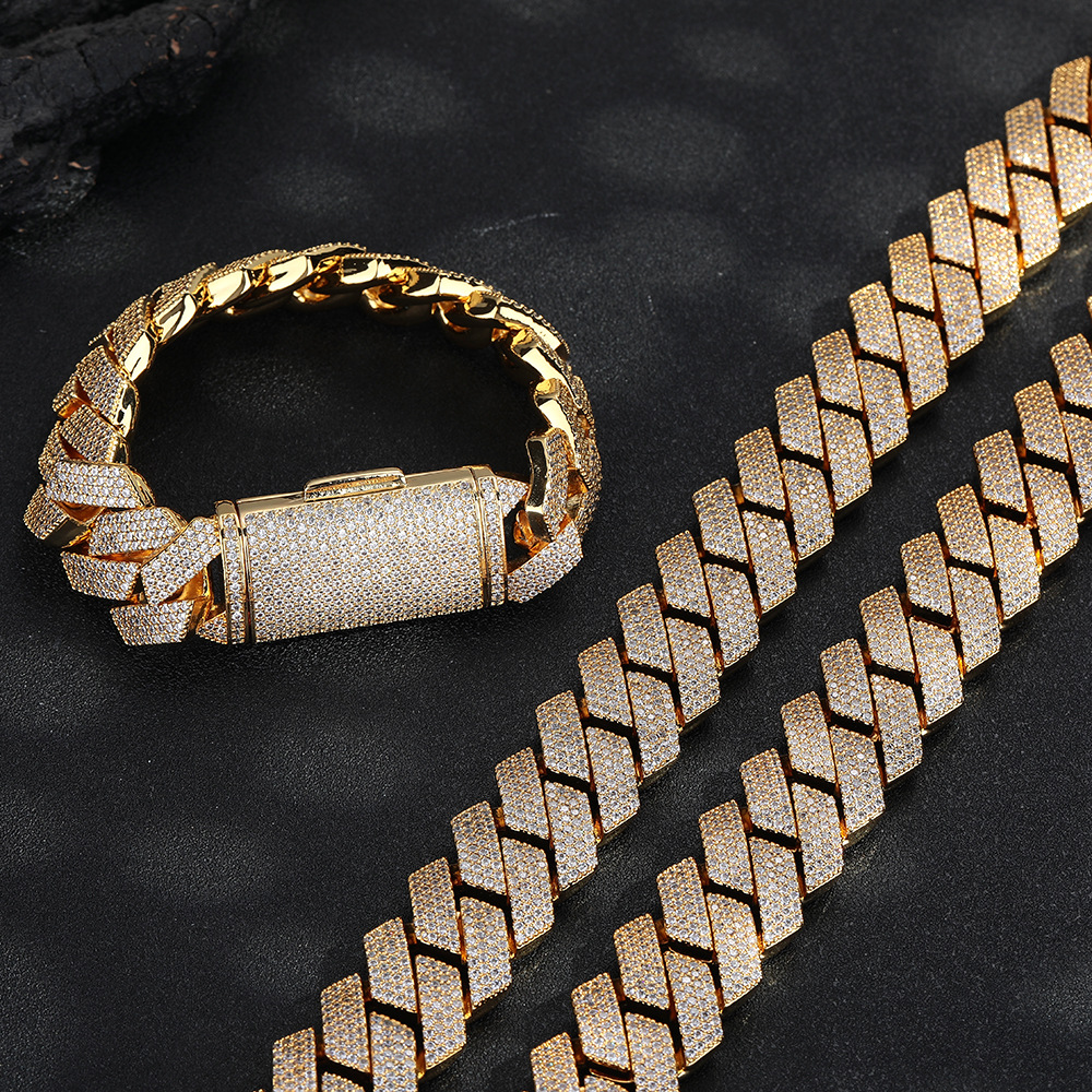 欧美跨境嘻哈22mm泡泡古巴链满钻项链潮牌个性男士嘻哈饰品手链