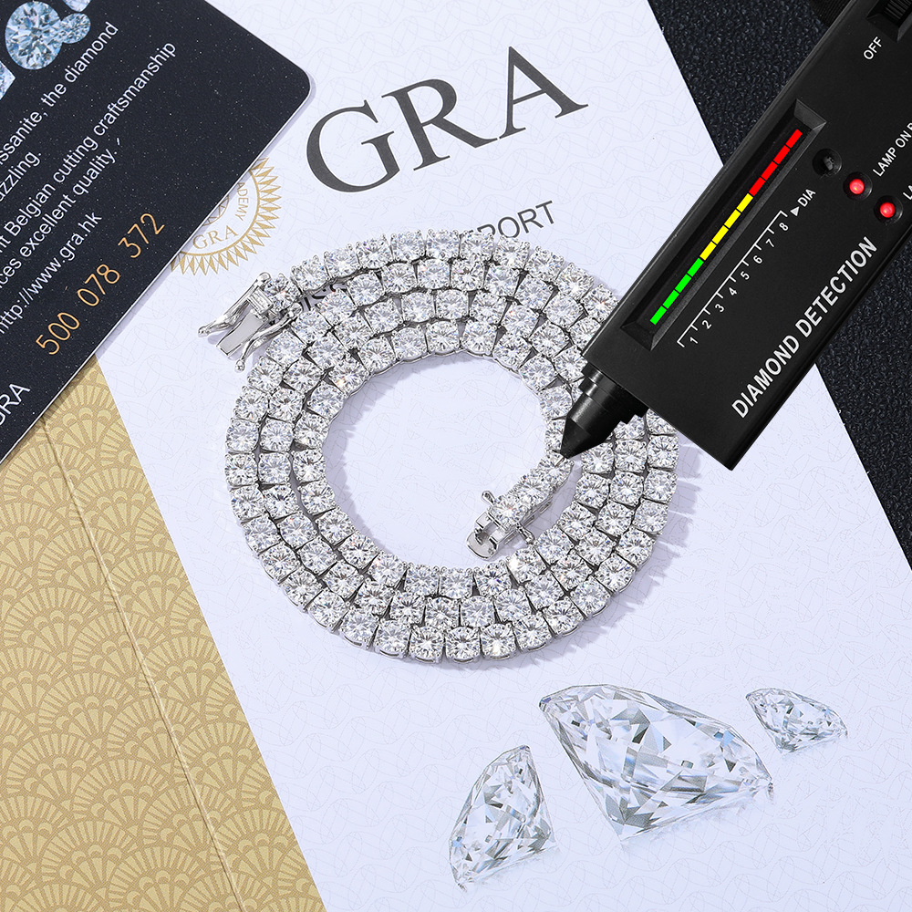 厂家现货S925银莫桑石单排网球链手链项链嘻哈饰品男女奢华