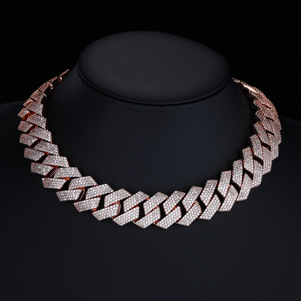 2025年秋 メンズトレンドアクセサリー 20mmキューバンチェーン 四列ジルコン フリップカバー スイートクールスタイルネックレス 幾何学模様