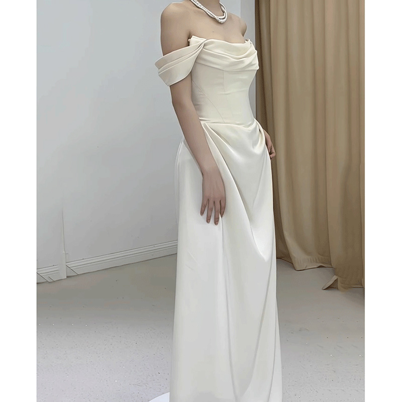 フレンチライトウェディングドレス、ハイエンド、シンプルなワンショルダースカート、夏の新しいサテン気質フィッシュテールホワイトドレス