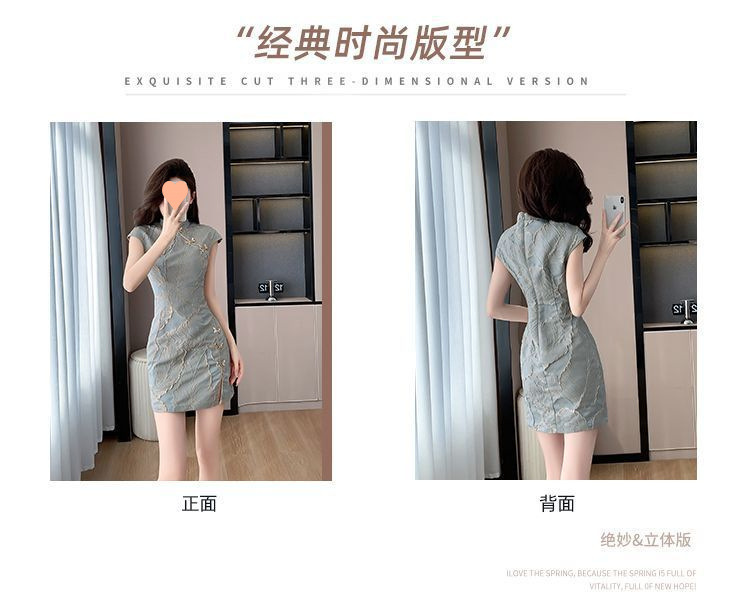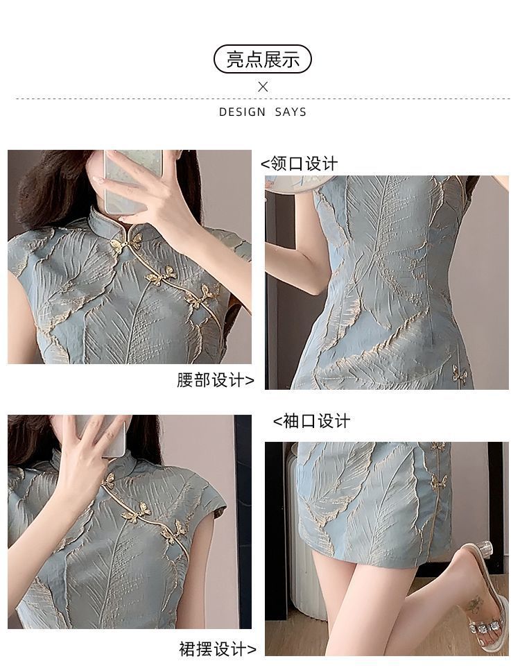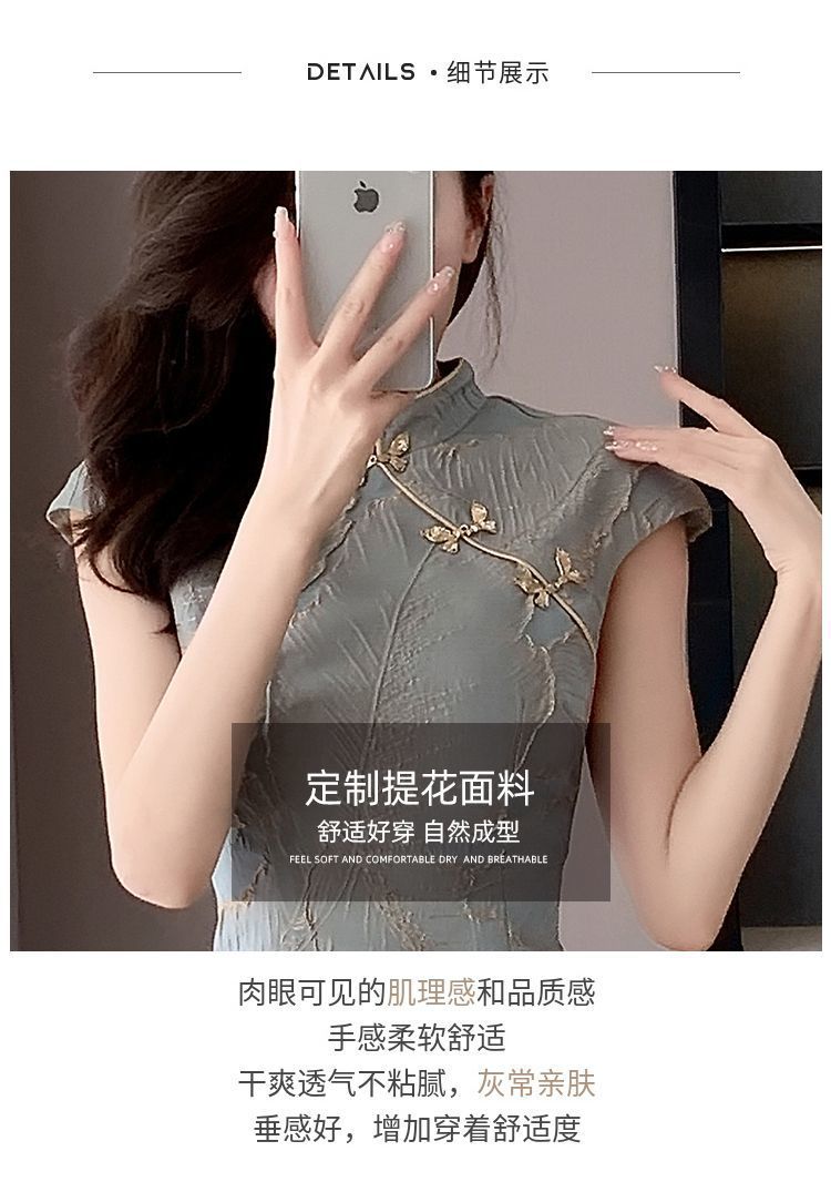 5593高級チャイナドレス新中国式女性高級感夏新日常レトロ国風ワンピース気質ロングタイプ