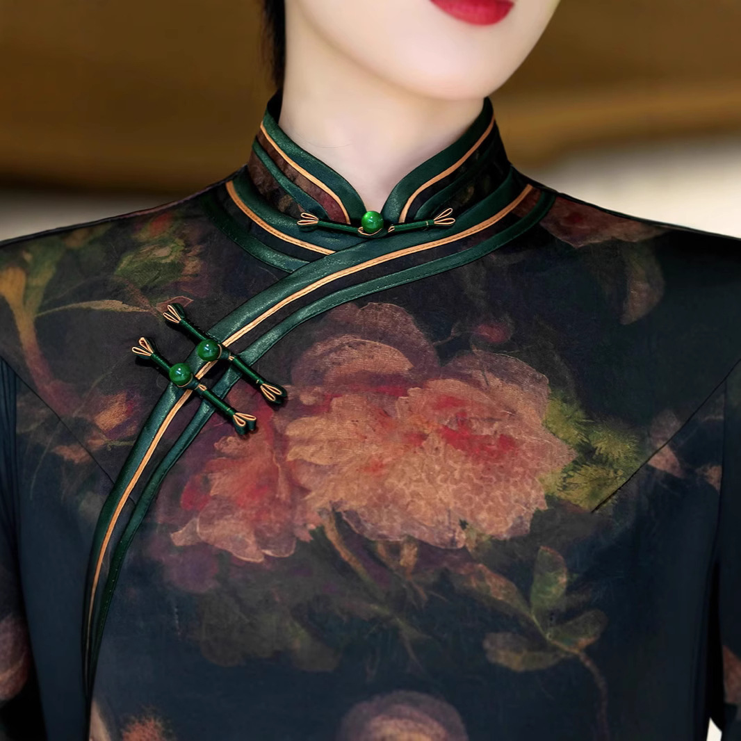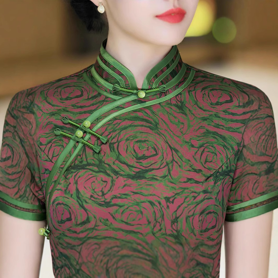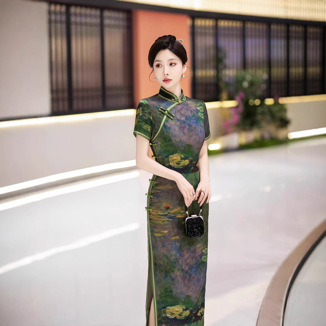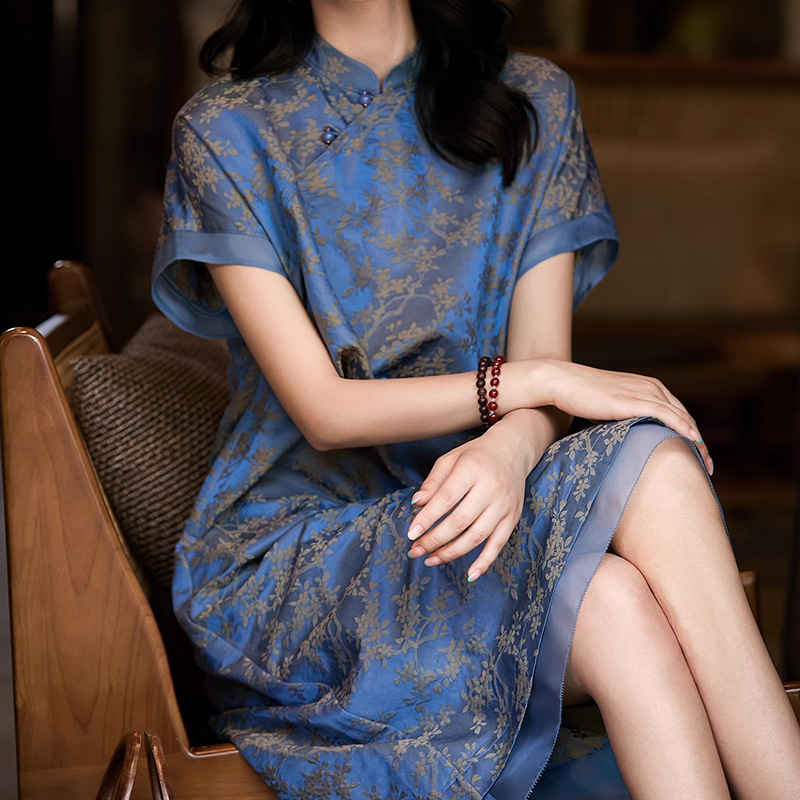 新しいシルクハイエンド中国ドレス女性のための 2025 夏気質国民風新しい改良されたハイエンドスリットチャイナドレス