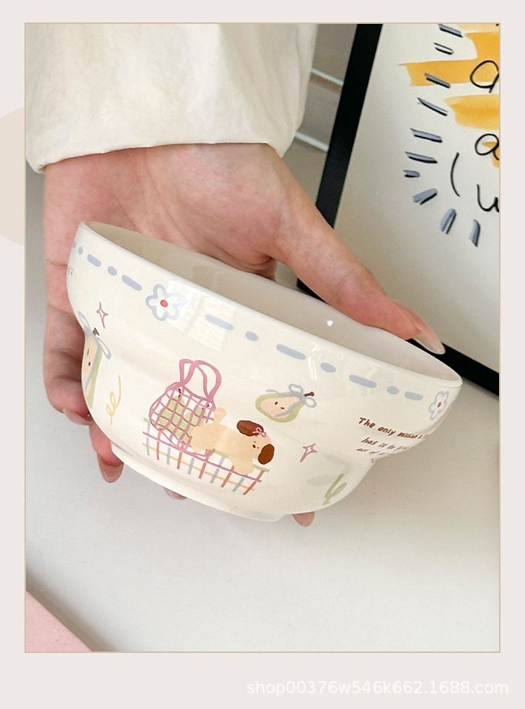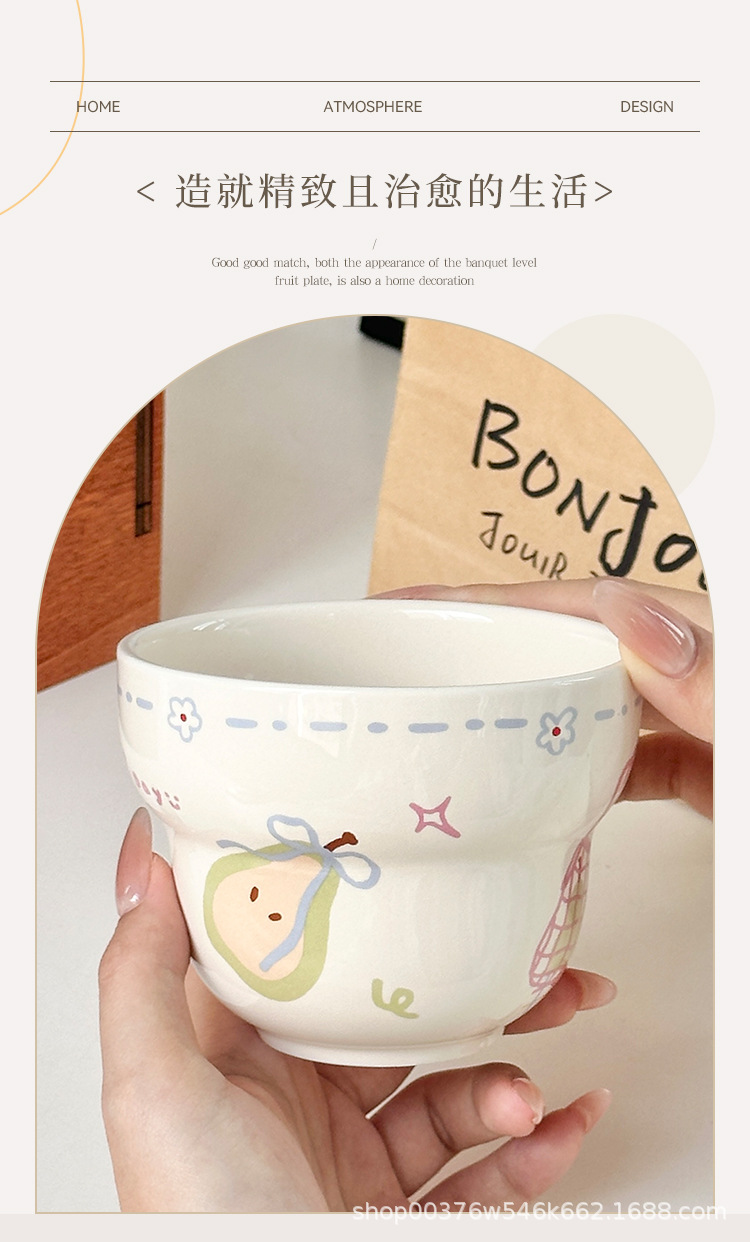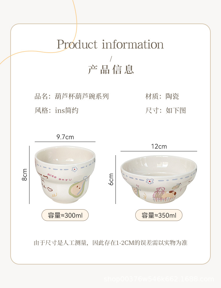 かわいいクリームins風ひょうたんボウル高颜値陶磁器ご飯ボウル家庭用デザートボウル朝食ボウルスープボウル
