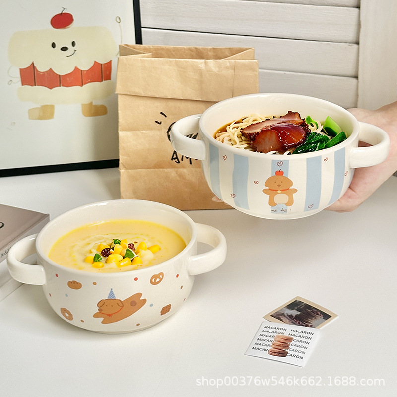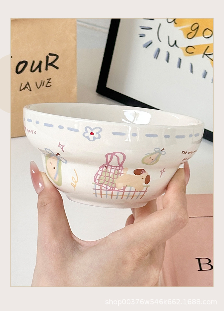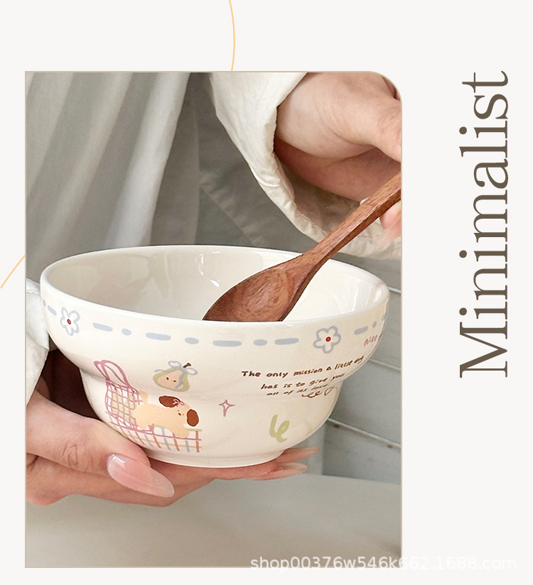 ラーメンボウル家庭用 8inch 背の高い大きなスープボウル漫画かわいいインセラミックヌードルボウル高価値インターネットセレブ食器