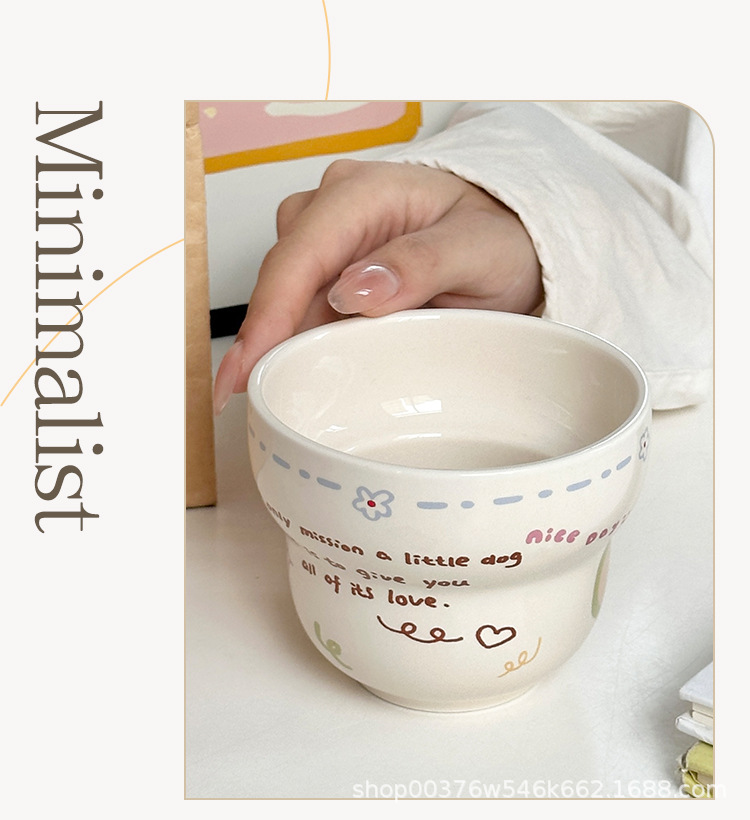 かわいいクリームins風手つまみ茶碗高颜値陶磁器ご飯茶碗家庭用デザート茶碗朝食茶碗スープ茶碗