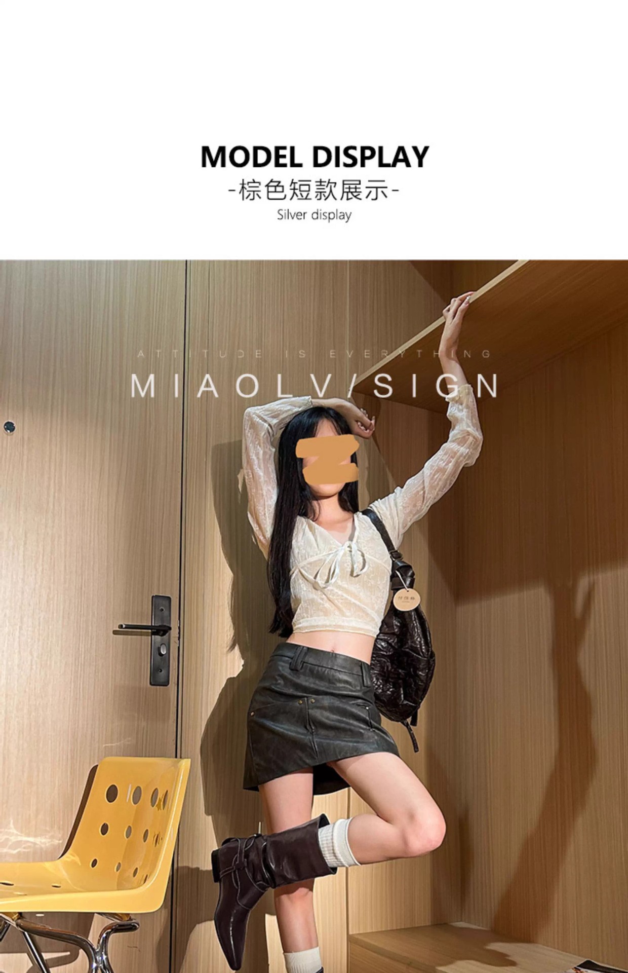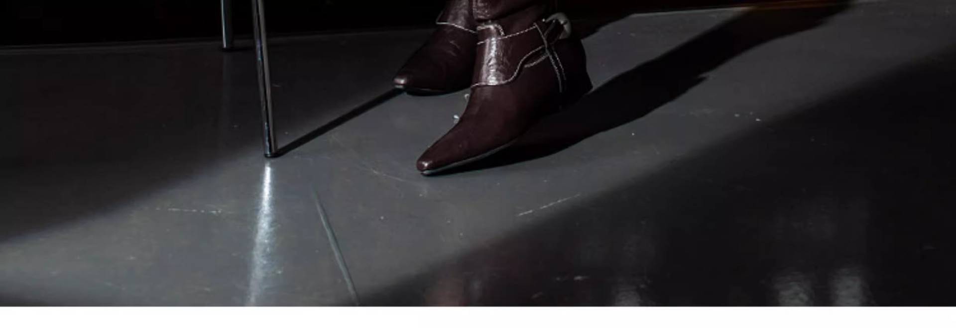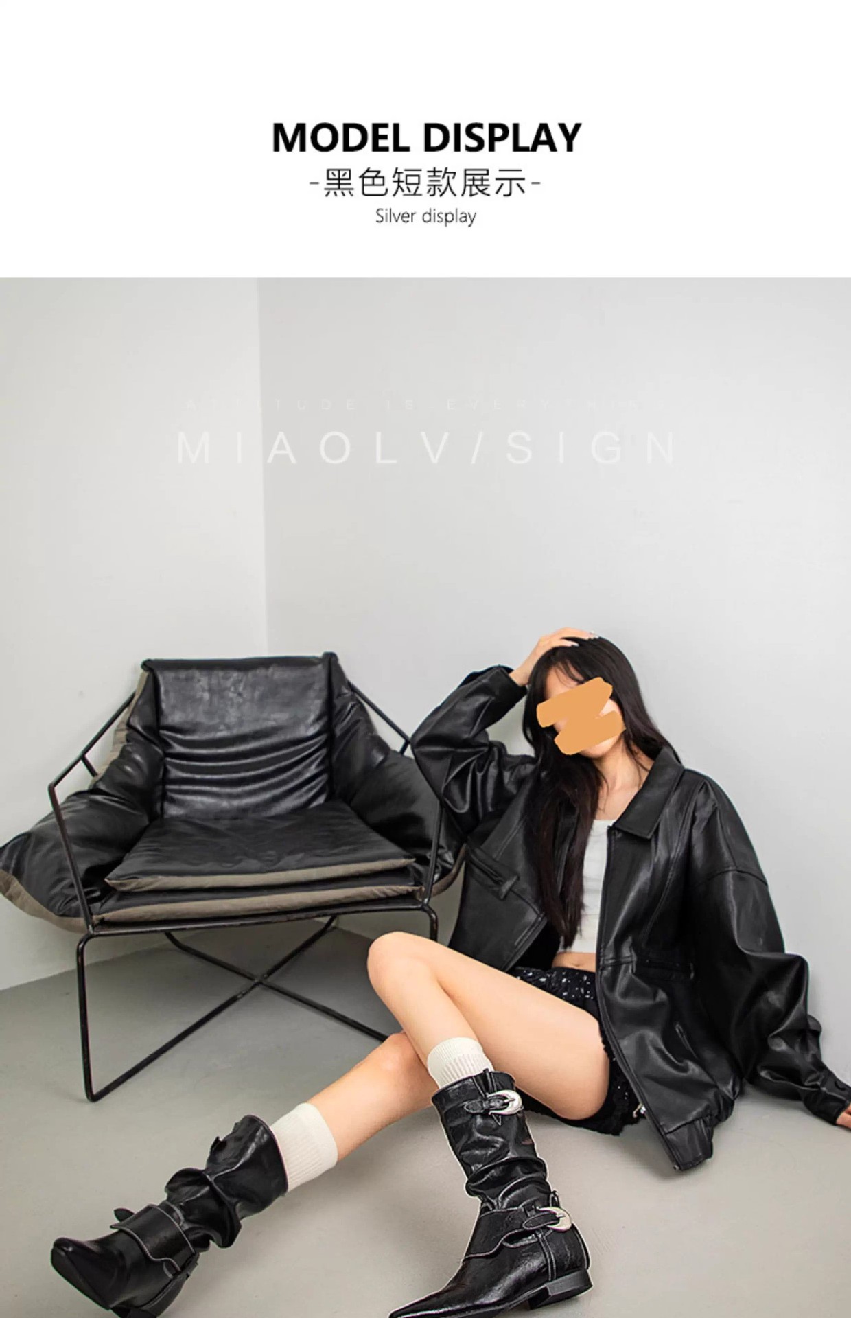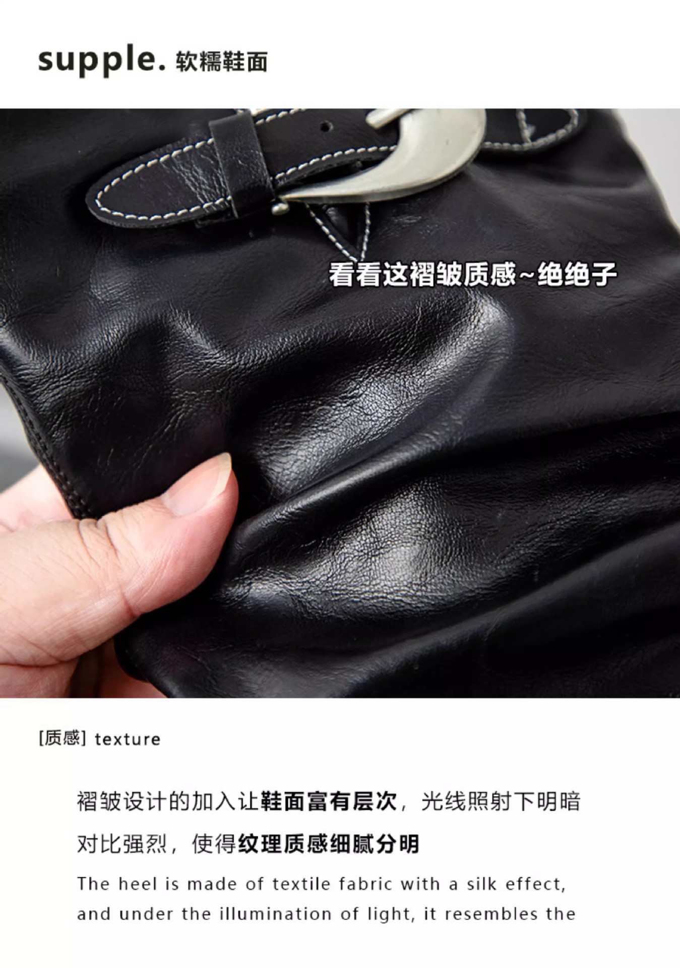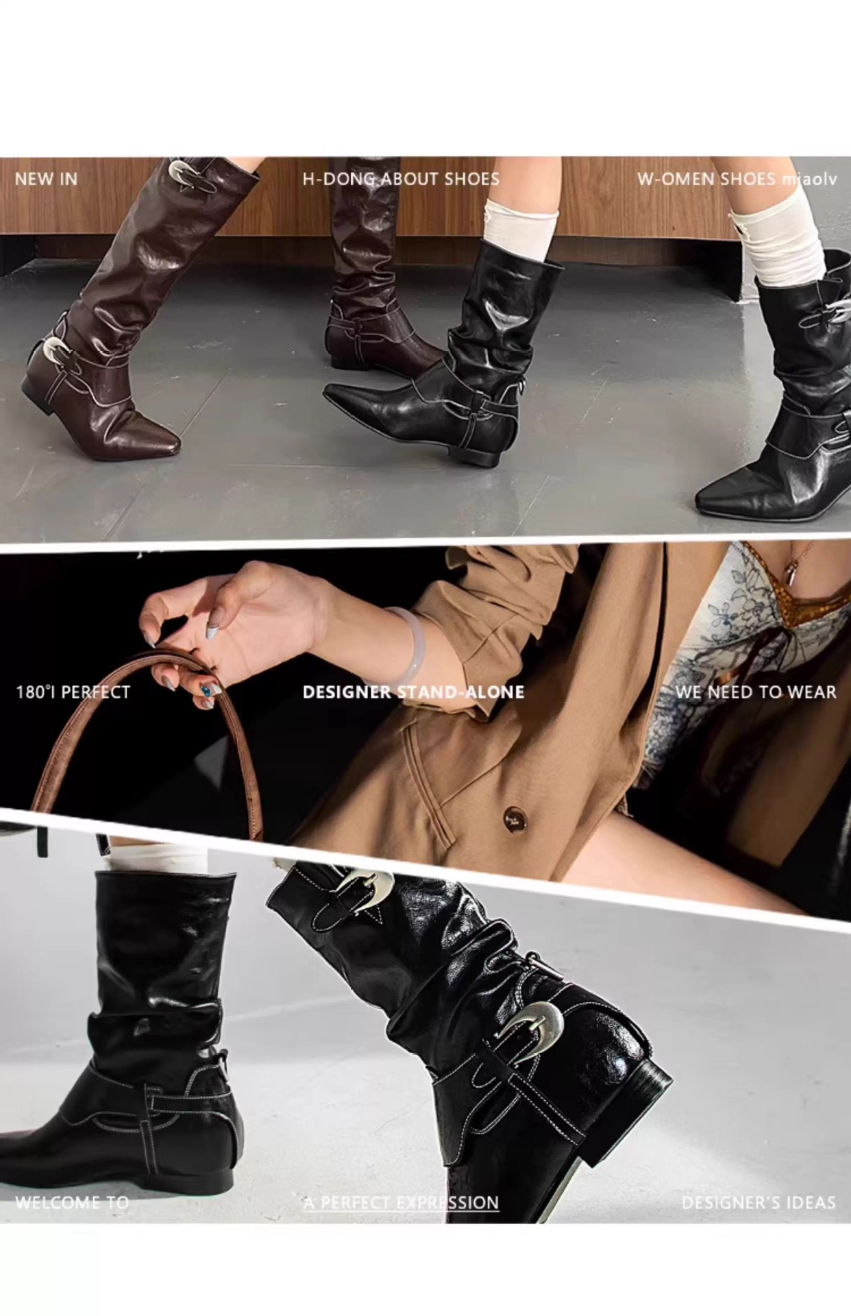 Mooreyu原创牛皮西部短靴女堆堆靴粗跟设计褶皱尖头骑士靴裤管靴