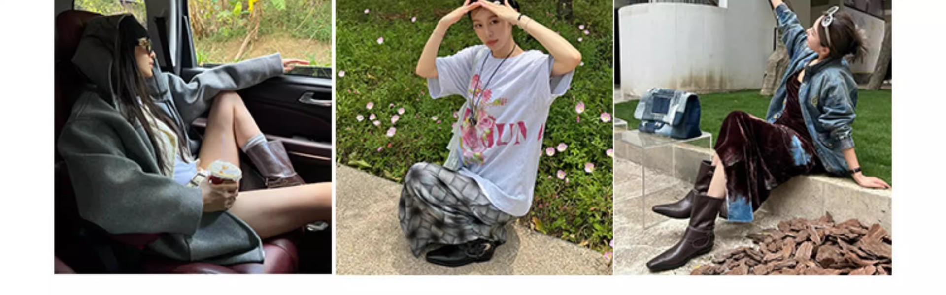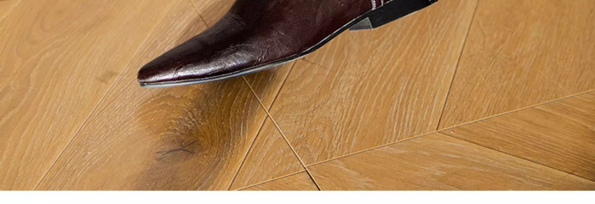 趙魯思と同じスタイル〜太いヒールのウエスタンカウボーイブーツ、ほんのり色が付いたレトロなファッションブーツ、スリムな太いヒールのポインテッドトゥブーツ