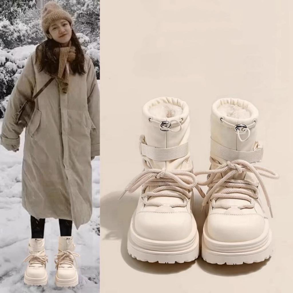 厚い底の雪の靴の女性の2024の新型の冬のベルベットは厚い東北の大きい綿の靴の防水の滑り止めのマーティンのショートブーツをプラスします。