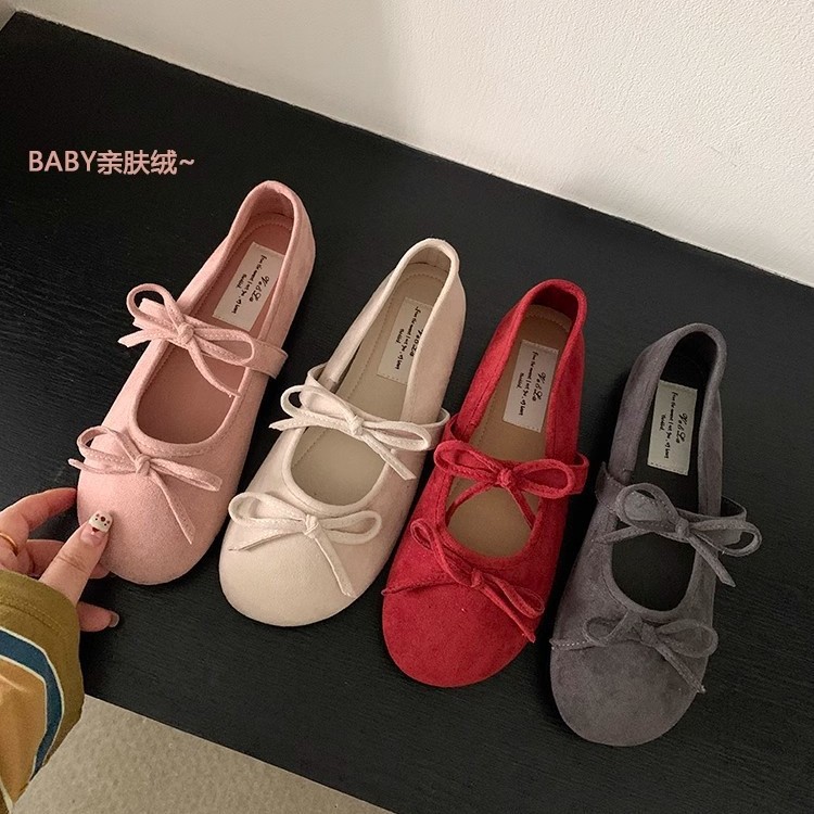晩風靴フラットシューズバレエ靴フレンチ蝶結びメアリー珍靴早春の女性靴とスカートの柔らかい底の靴