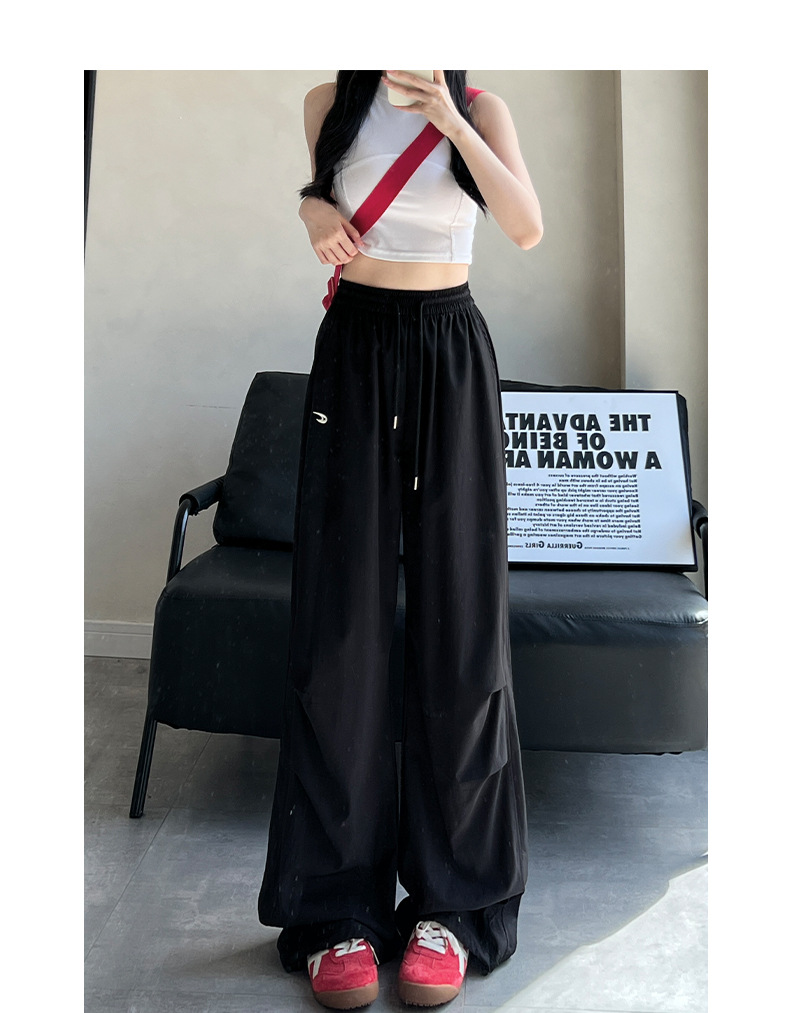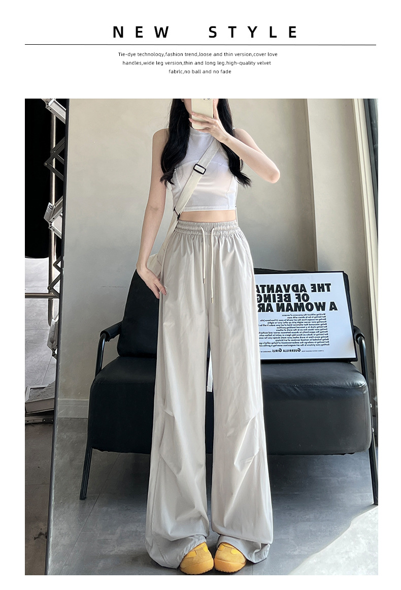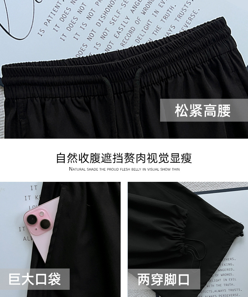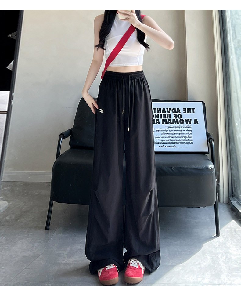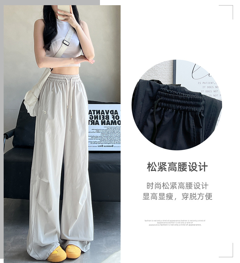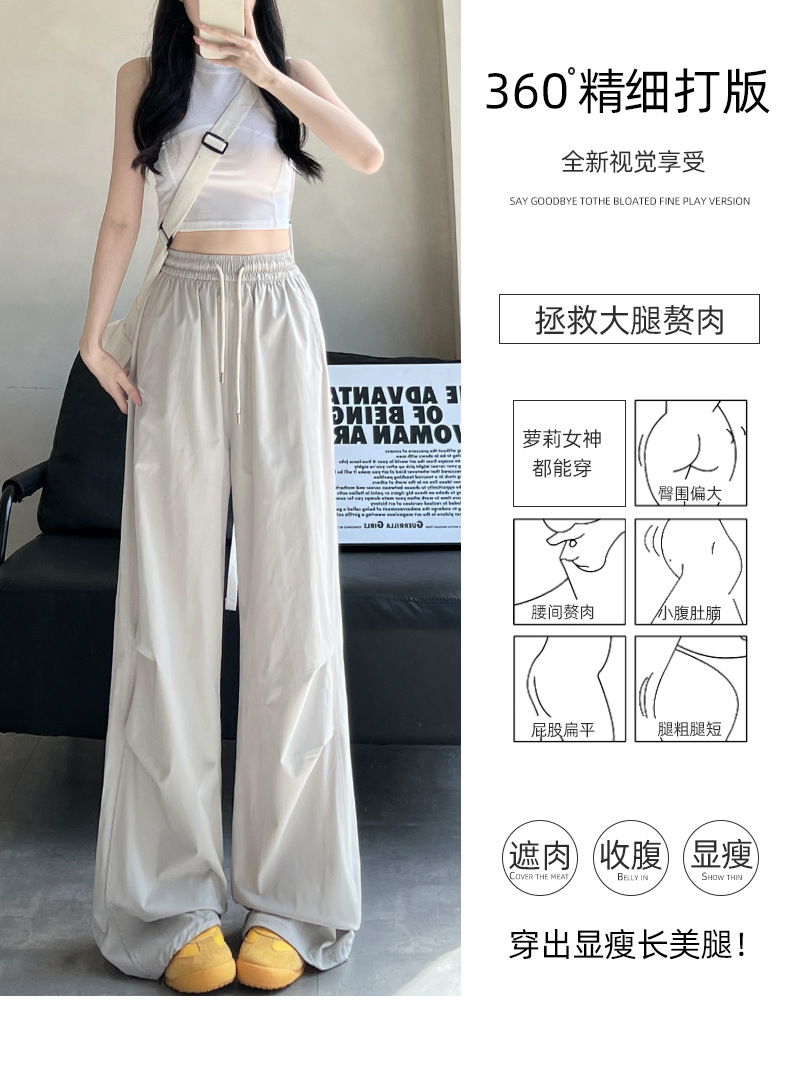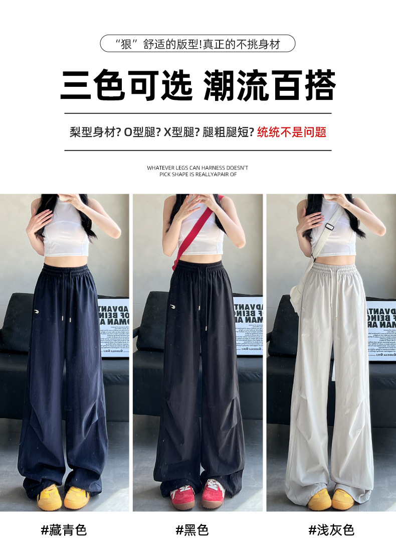 夏用の女性用グレー刺繍スウェットパンツ、薄手、ハイウエスト、スリム、ゆったり、ドレープ、速乾性アイスシルクオーバーオールパンツ