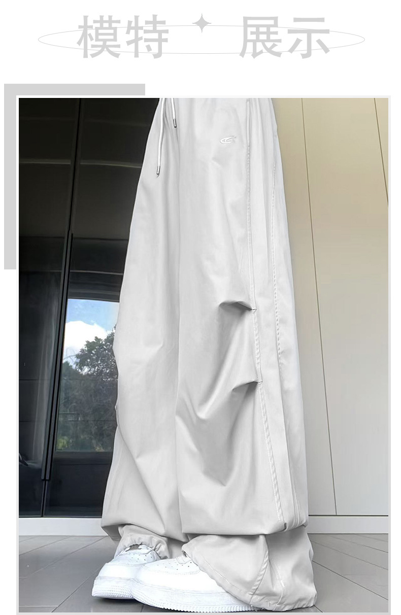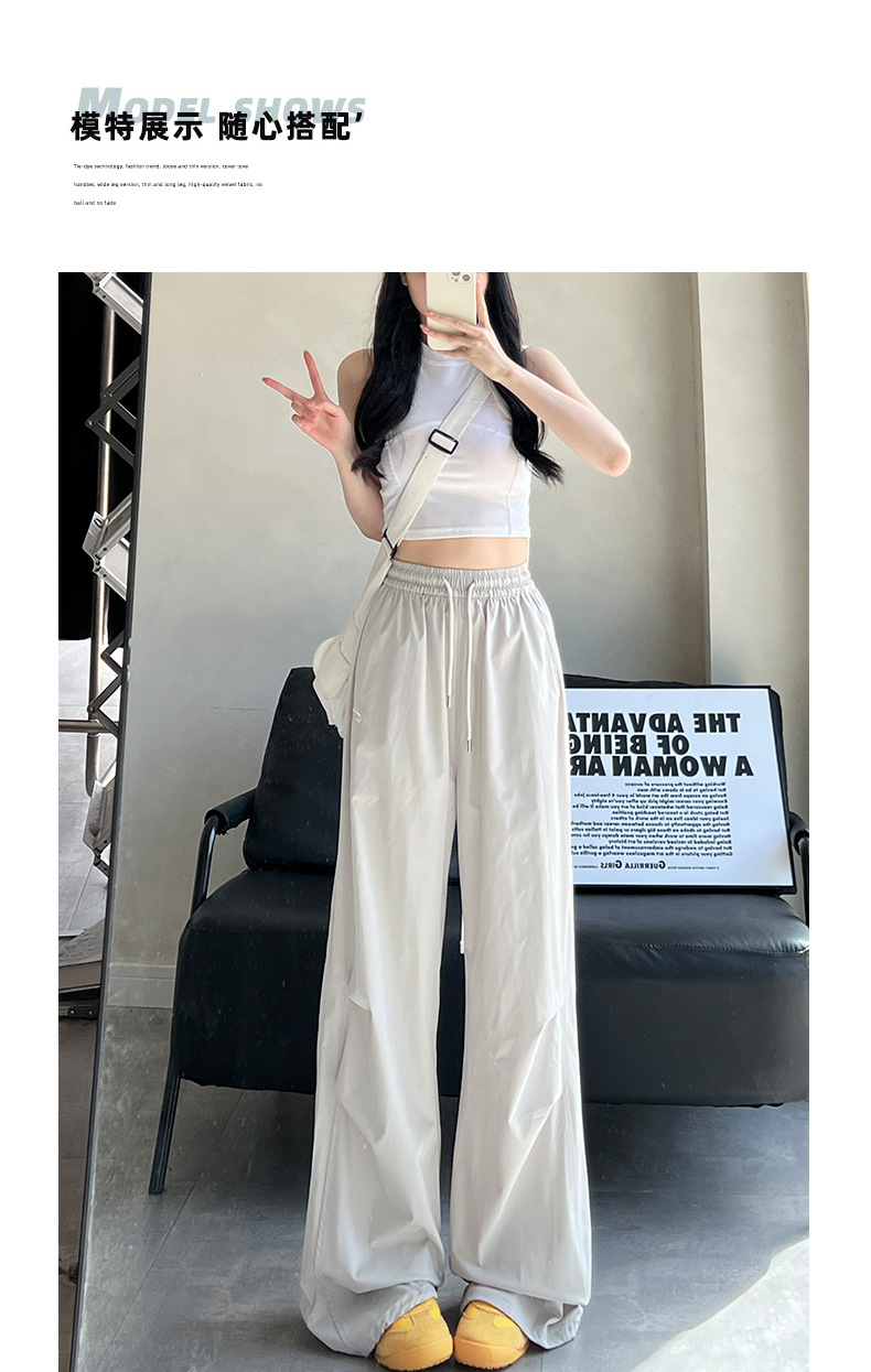 アメリカのレトロな工装のズボンの女性の夏の高腰の広い足のカジュアルなゆったりしているのが見えます。