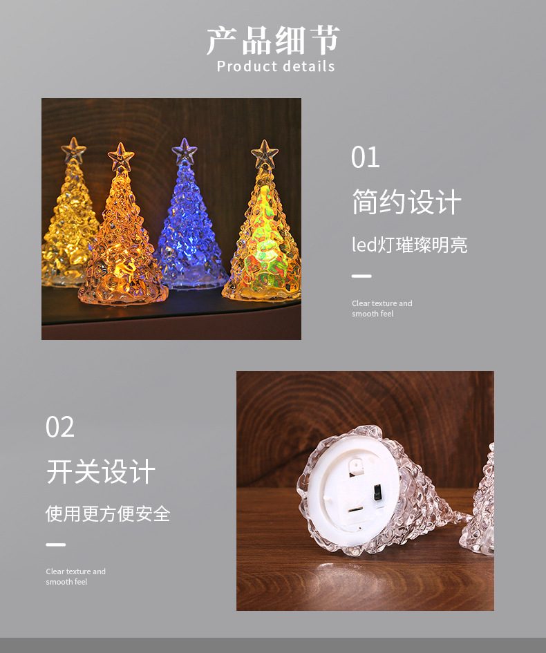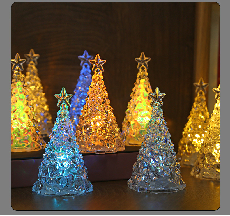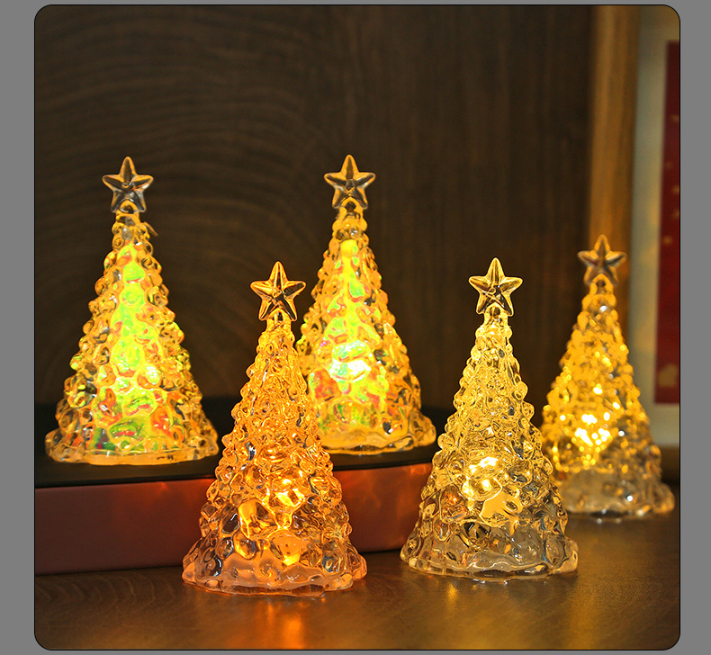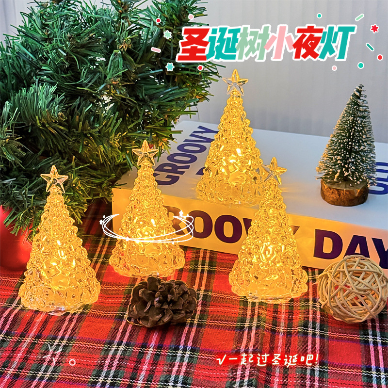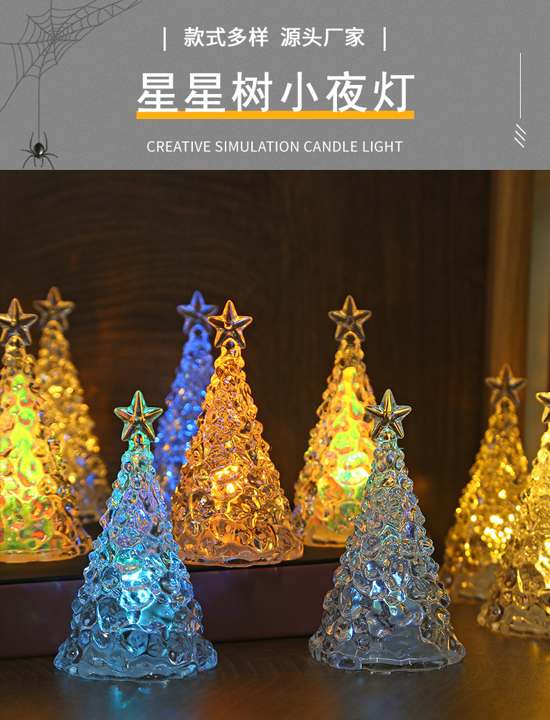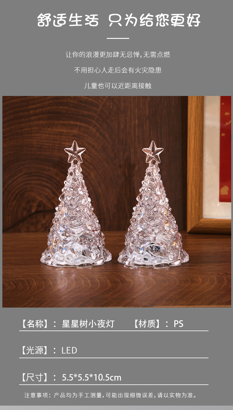 クリスマスツリー常夜灯 クリスマスクリスタルスターライト 装飾雰囲気灯 子供向けクリスマスプレゼント デスクトップ飾り