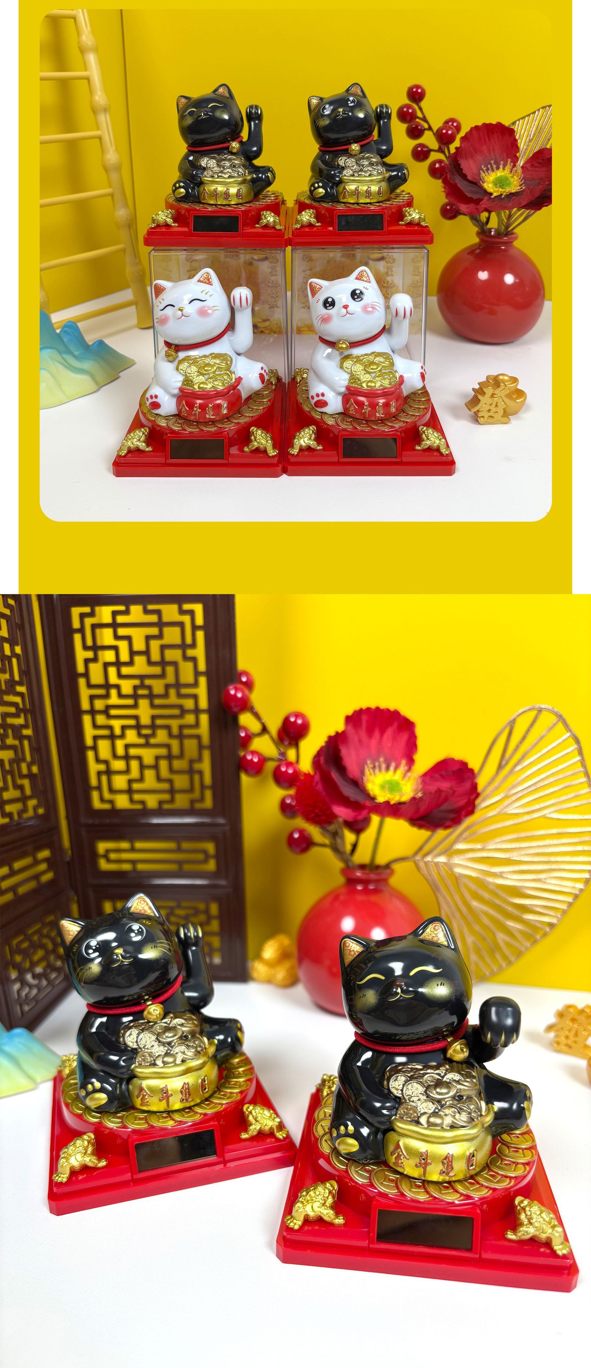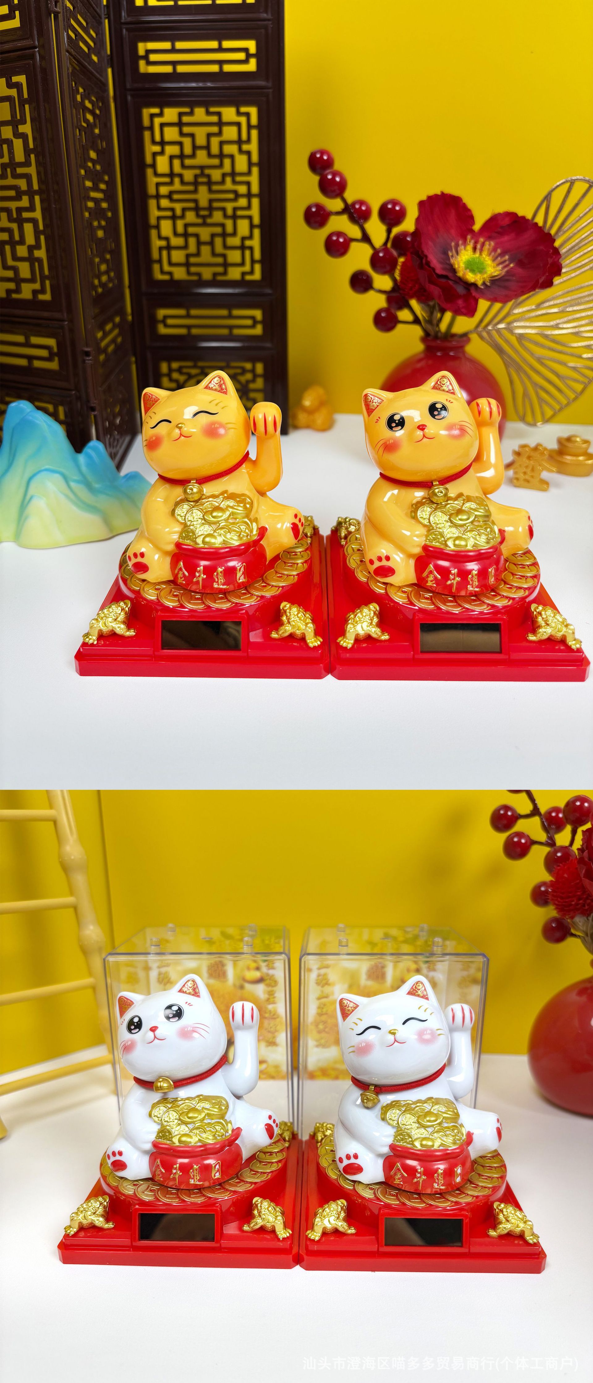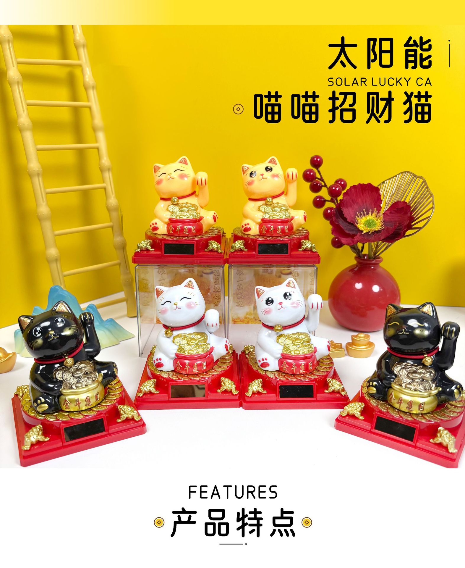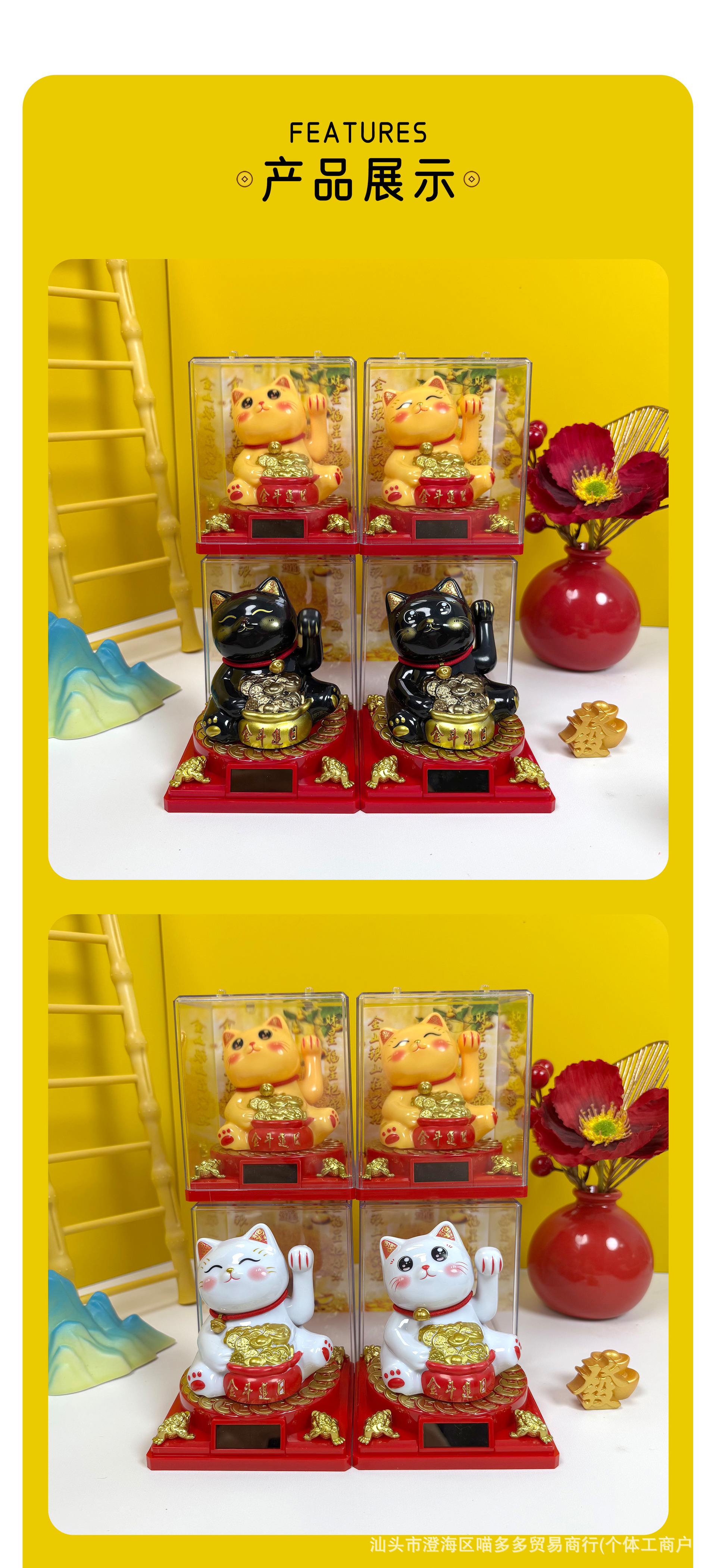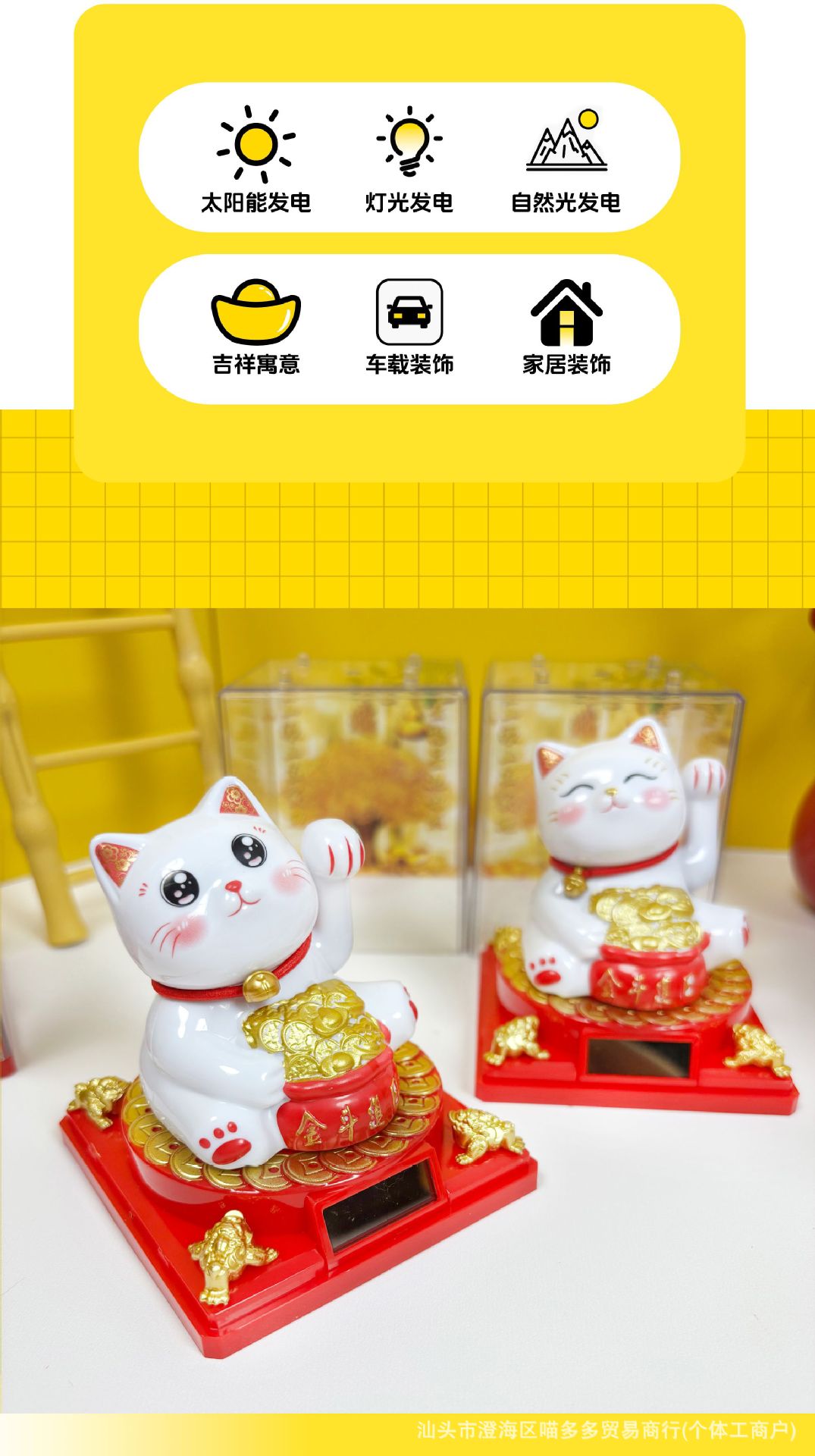 太阳能招财猫汽车平安摆件开业饰品桌面车载招手发财猫礼品卡通