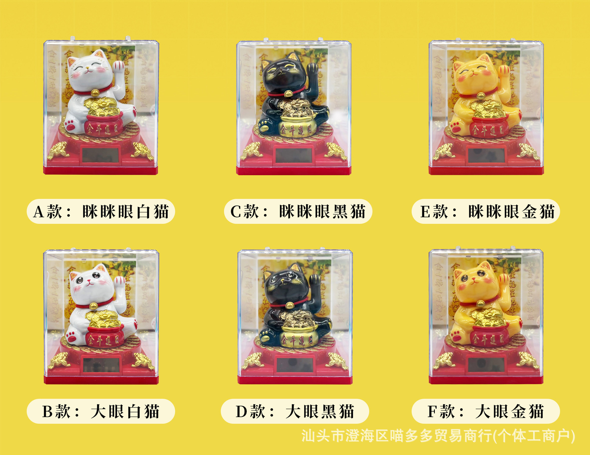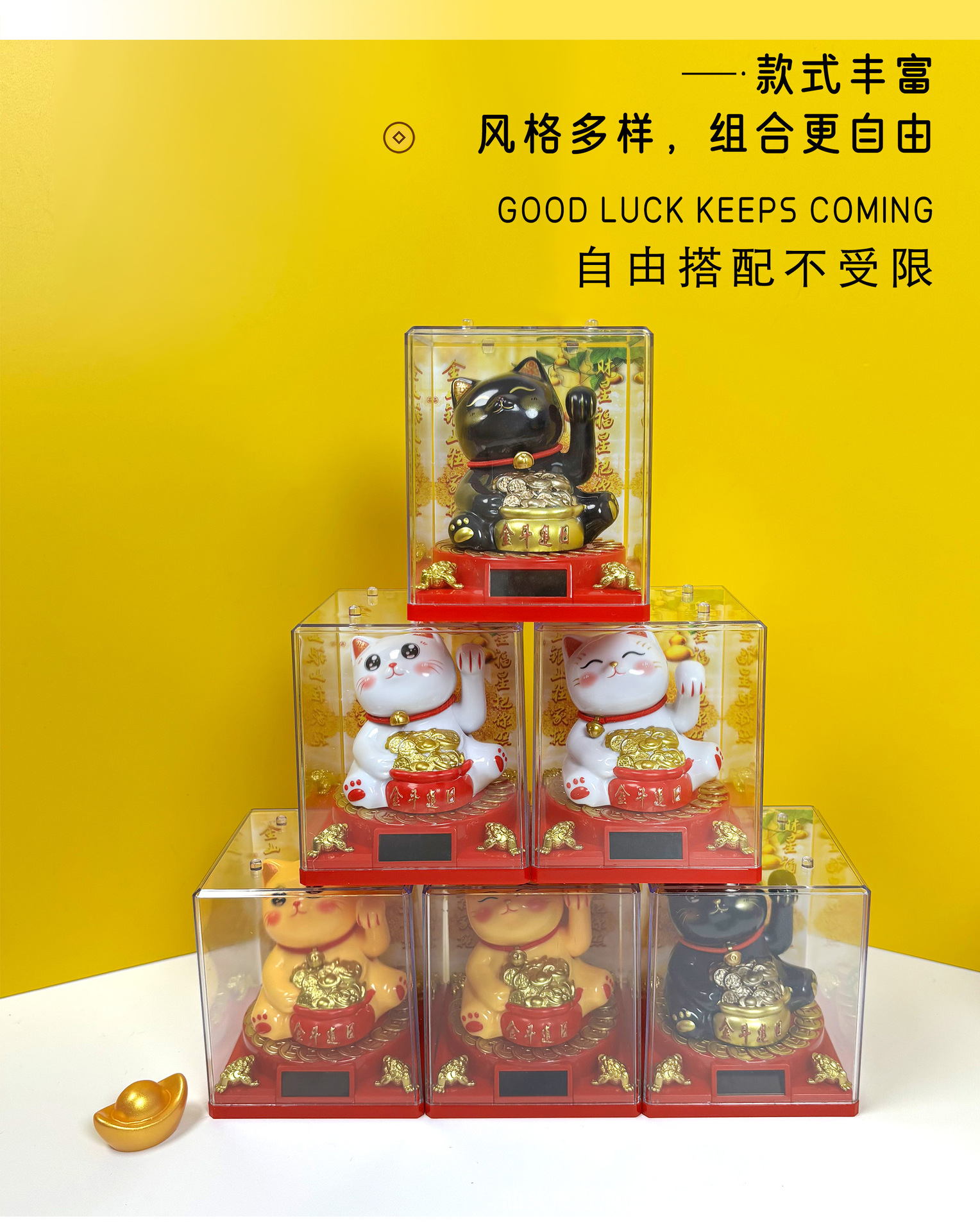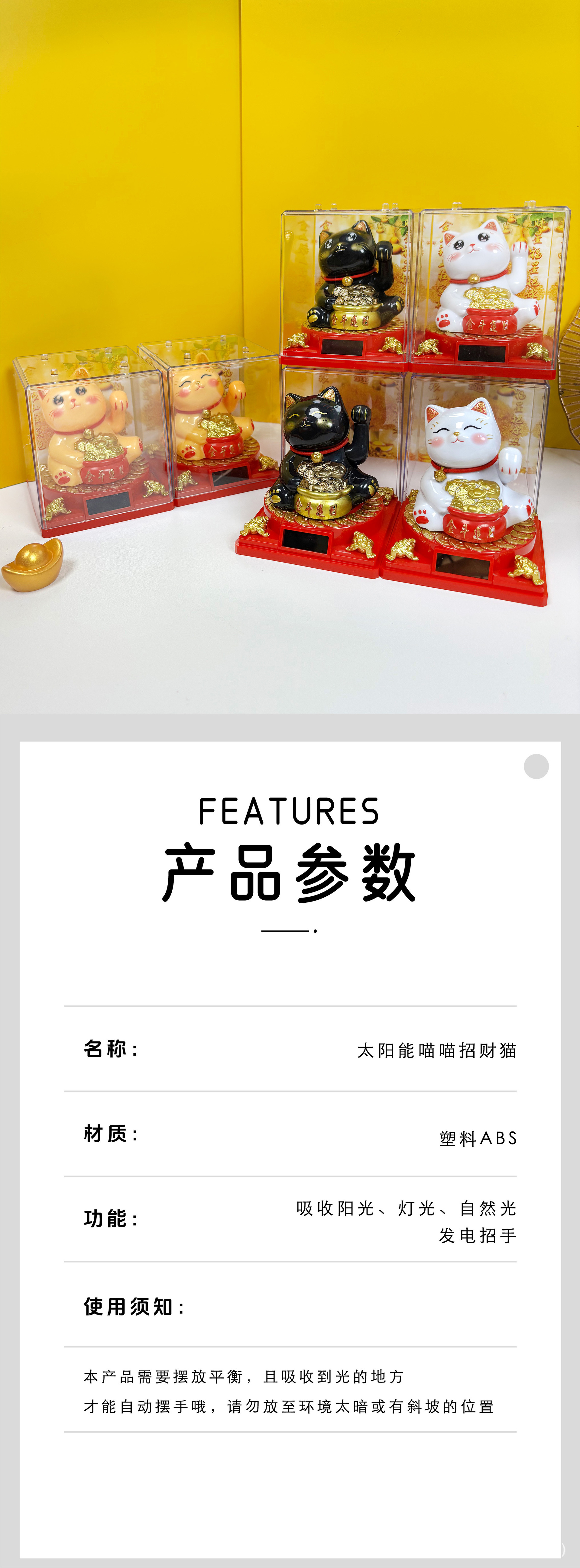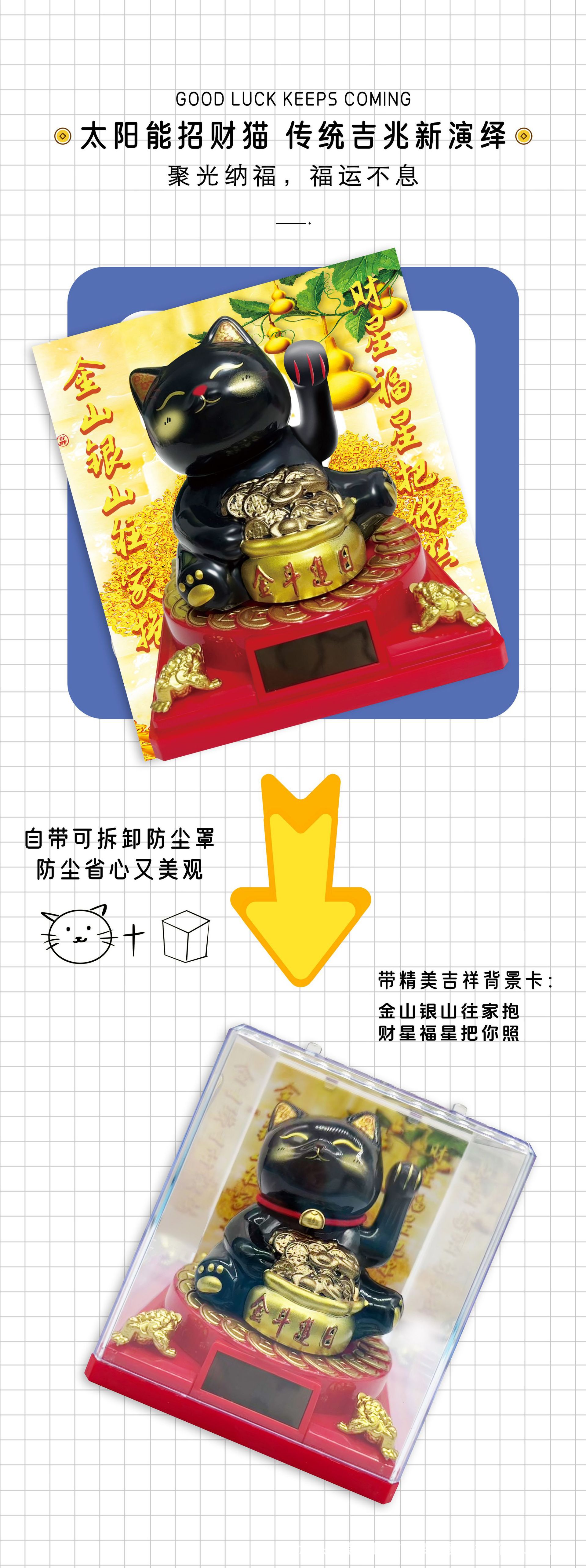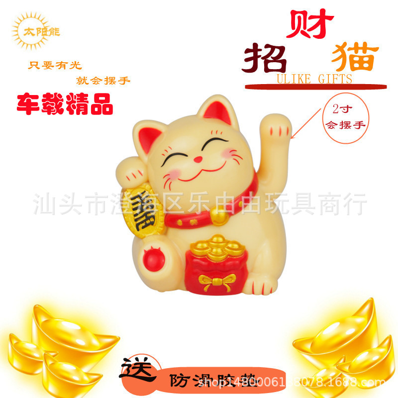 2寸太阳能自动招手迷你招财猫办公室桌面汽车摆件装饰塑料工艺品