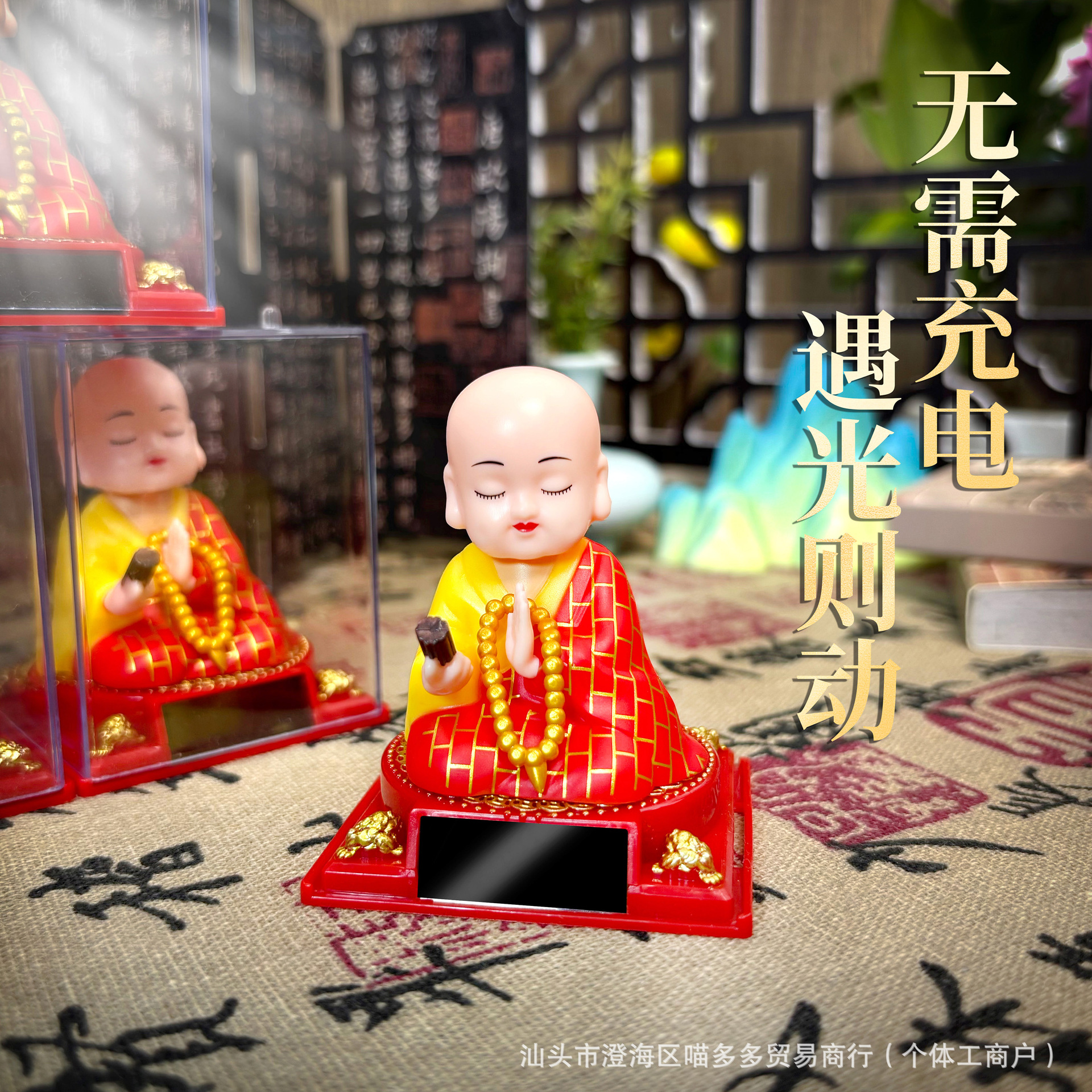网红太阳能小和尚点头敲木鱼车用汽车家具工艺品车载摆件