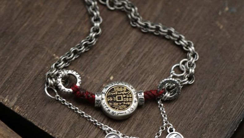般若波羅蜜多心経開口手環六字真言心経ブレスレット999足銀復古寛版男女