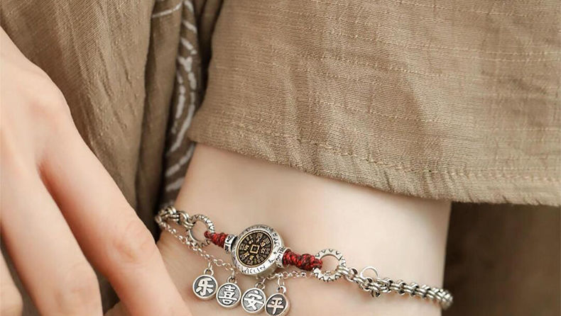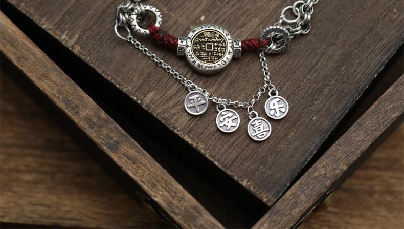 925 シルバーレトロ新中国風山ゴーストブランド平安と喜びアンクレットエスニックスタイルニッチデザイン女性の多用途感覚