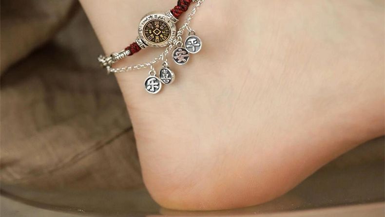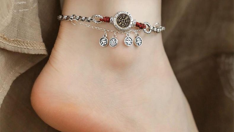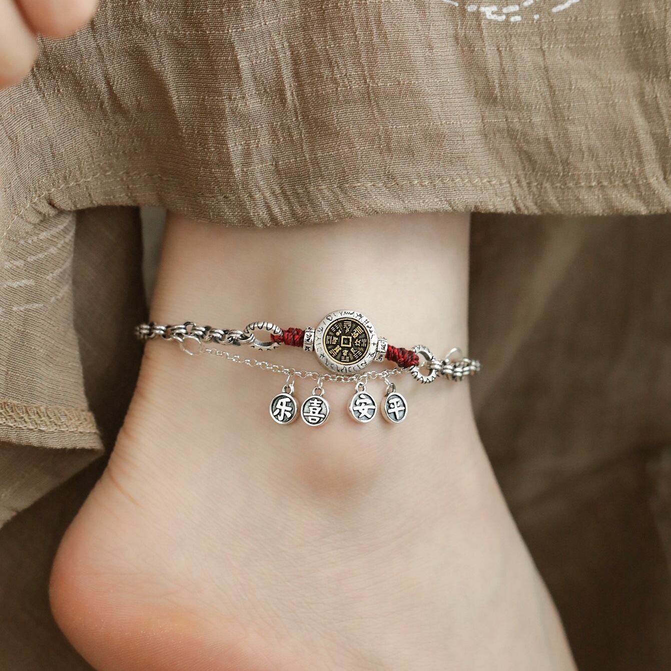 レトロなシルバー925の平和と喜びの山のゴーストカードアンクレット、新しい中国風のニッチデザイン、軽い高級感、多用途のフットアクセサリー、その他